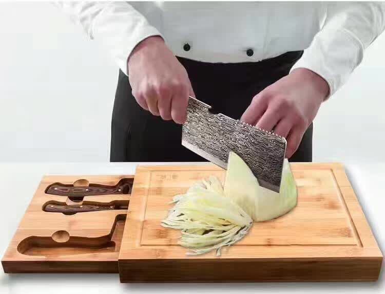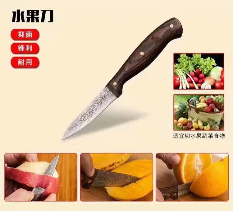 汉道大马士革钢厨房套刀采用优质大马士革钢与440不锈钢完美结合,刀刃锋利坚韧,菜刀,厨师刀,削皮刀一套三刀,让你不管是居家下厨还是露营造饭都有一样顺手的下厨工具