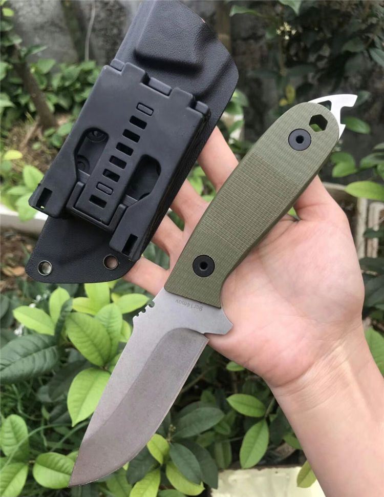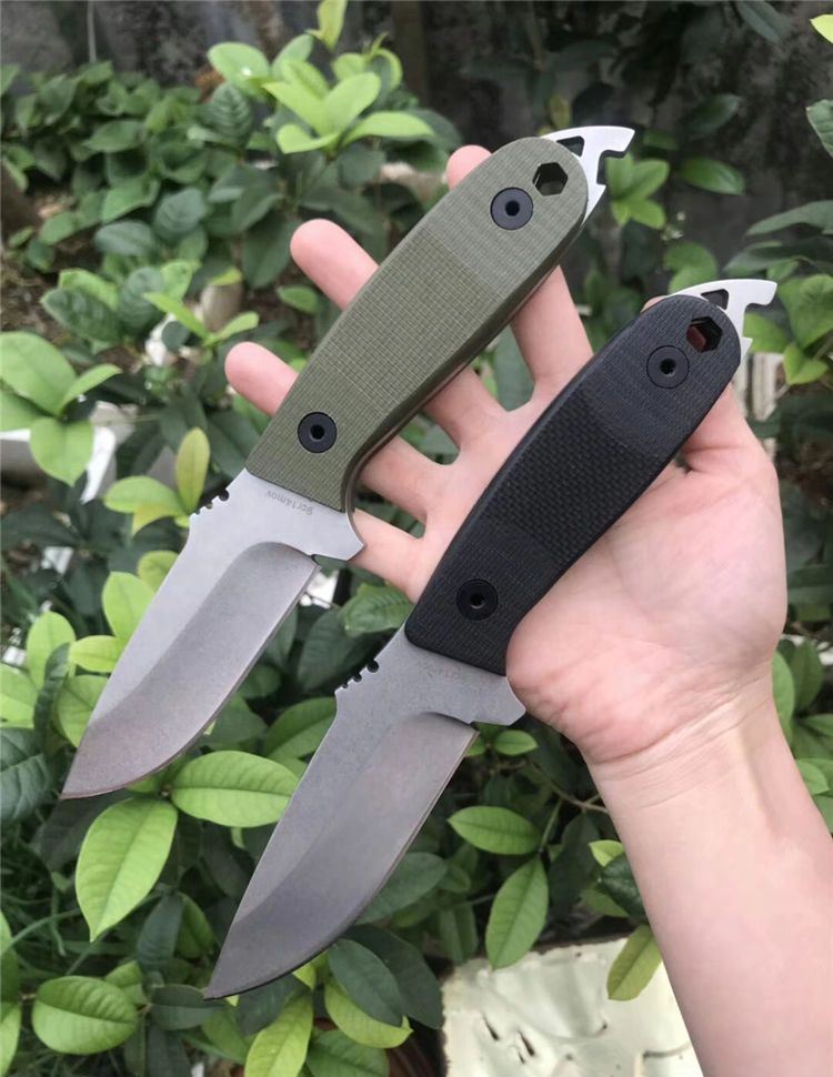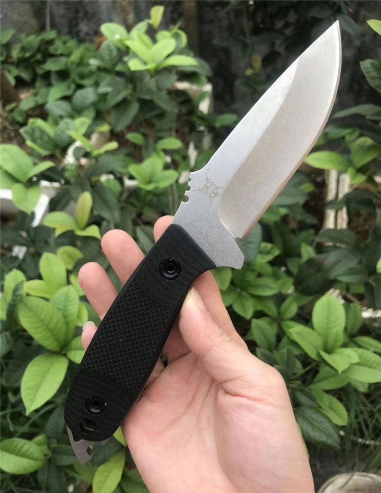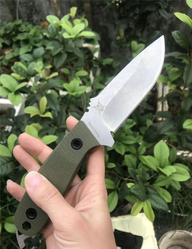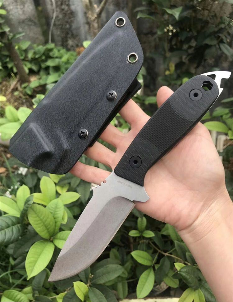多功能黑鲨求生直刀 全长:23.5cm 刃长:10cm 柄长:13.5cm 刃宽:1.7cm 刃厚:3mm 刃材:9CR18MOV 硬度:59HRC 表面:石洗 柄材:G10 刀套:k鞘