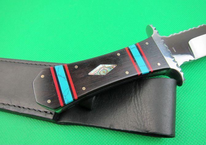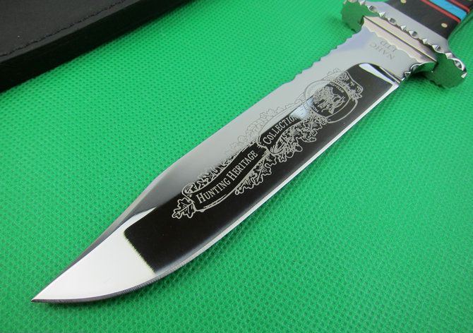 刀匠猎人寒光直刀 全长: 26cm 刃长: 14cm 刃宽: 2.9cm(最宽处) 柄长: 10.8cm 硬度: 58HRC 刃厚: 0.56cm 重量: 400克(含包装) 表面: 超给镜光 刃材: 8CR17MOV 柄材: 花犁木+天然彩贝 其他: 代工产品。