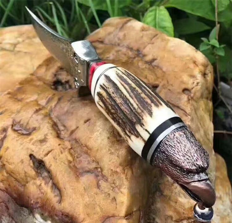 柄材:天然鹿角+不锈钢+彩石+神雕