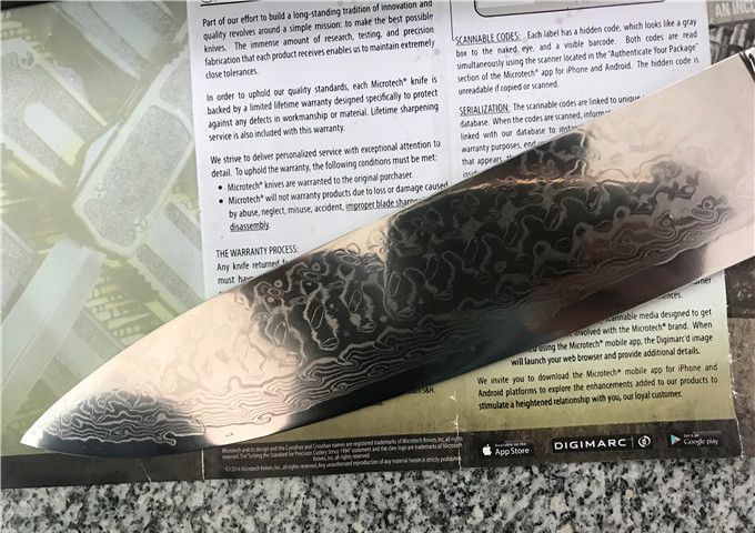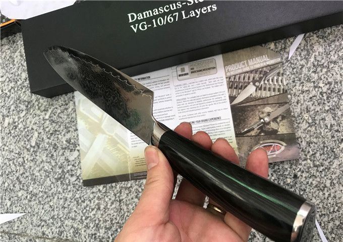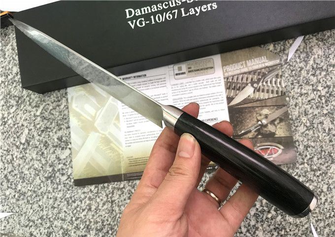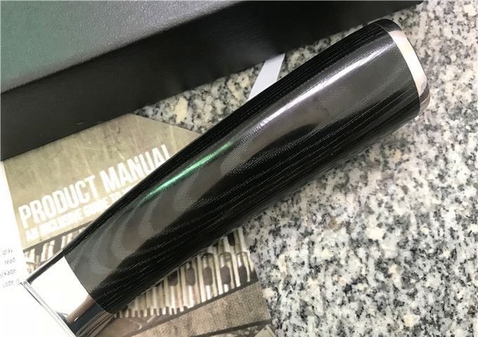 本刀采用进口VG-10大马士革钢锻造制作,具有硬度高,防锈性能好,韧性好的特点。以达到优异的锋利度和切削效果。刀柄采用米卡塔,手感更加舒适美观!配送礼品盒,居家送礼之精品!