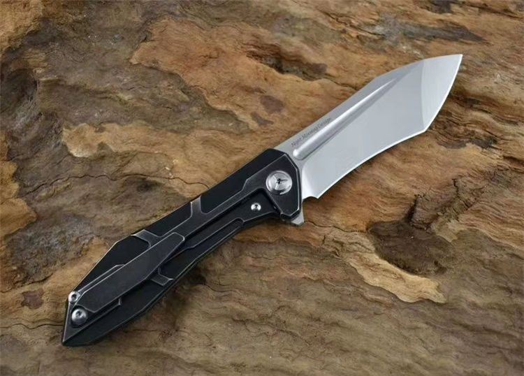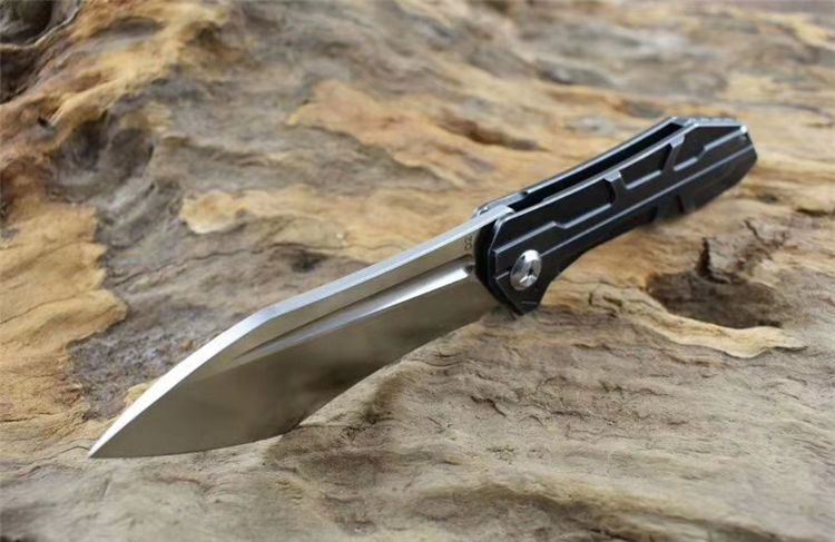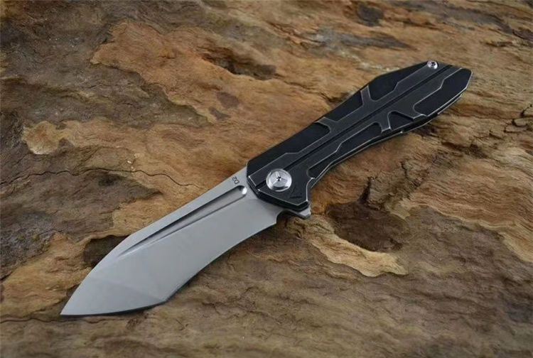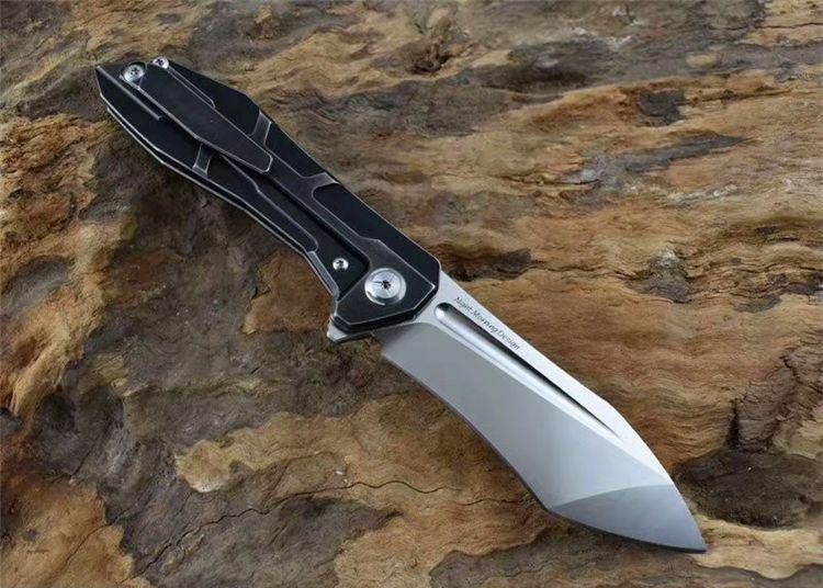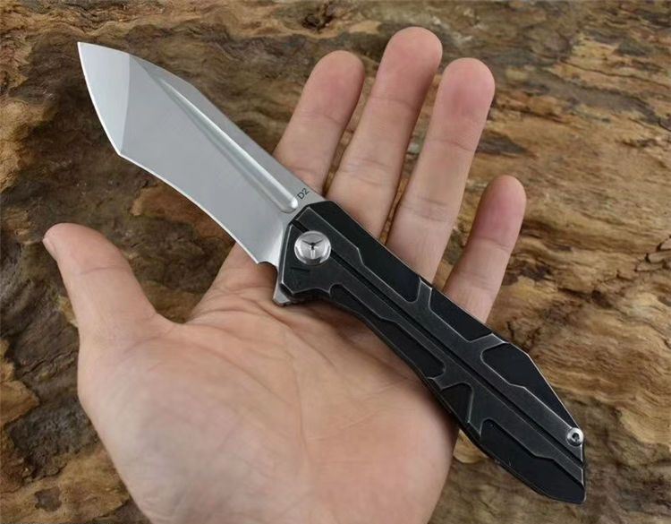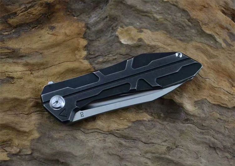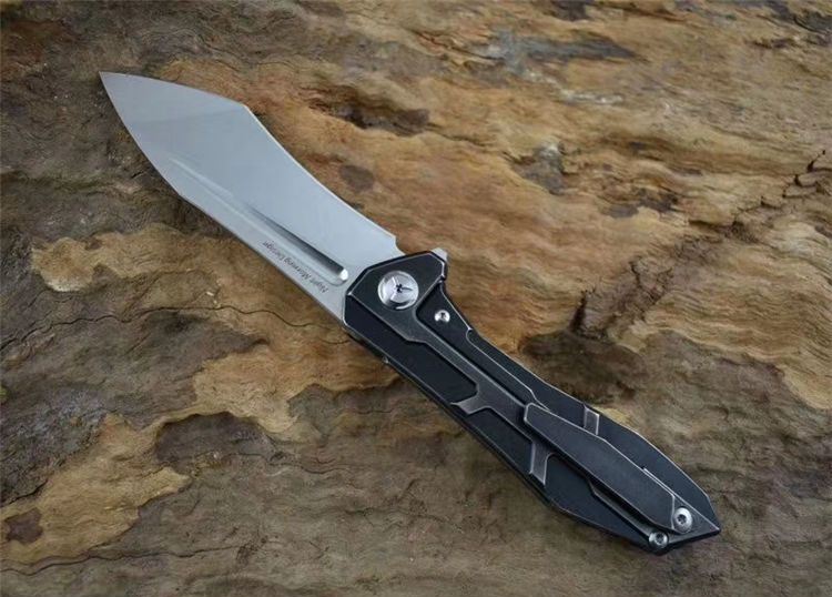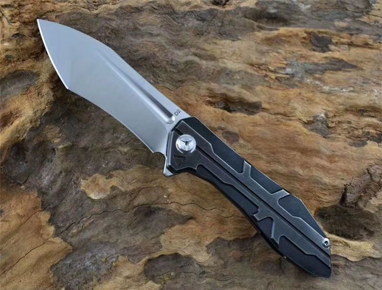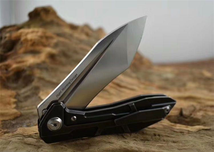 裂土D2钛柄轴承快开折刀 全长:200mm 刃长:90mm 刃厚:3.5mm 刃宽:30mm 刃材:D2钢 柄材:钛合金 硬度:60HRC 重量:123g