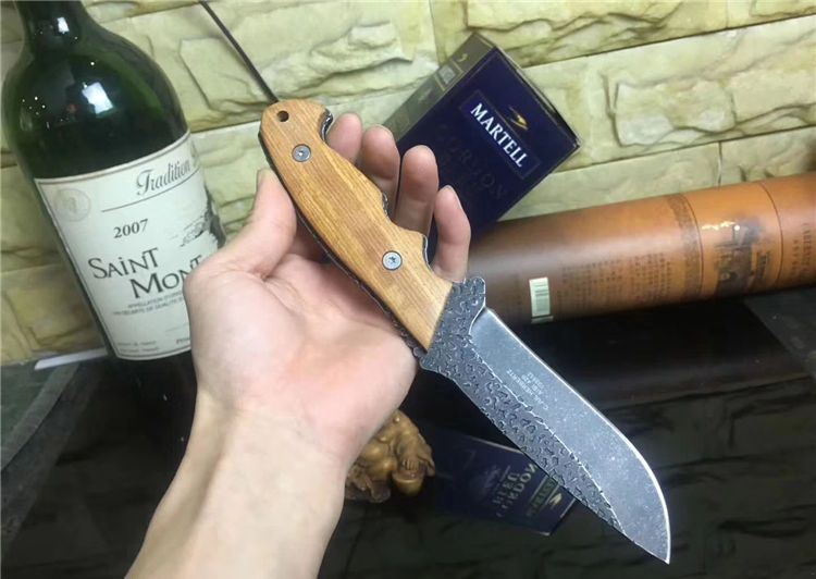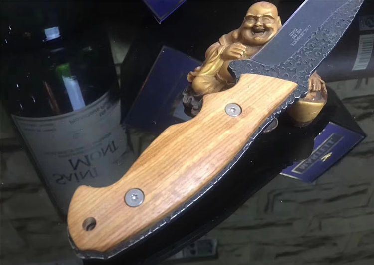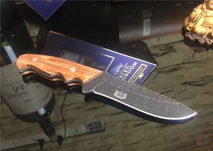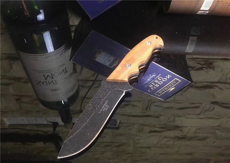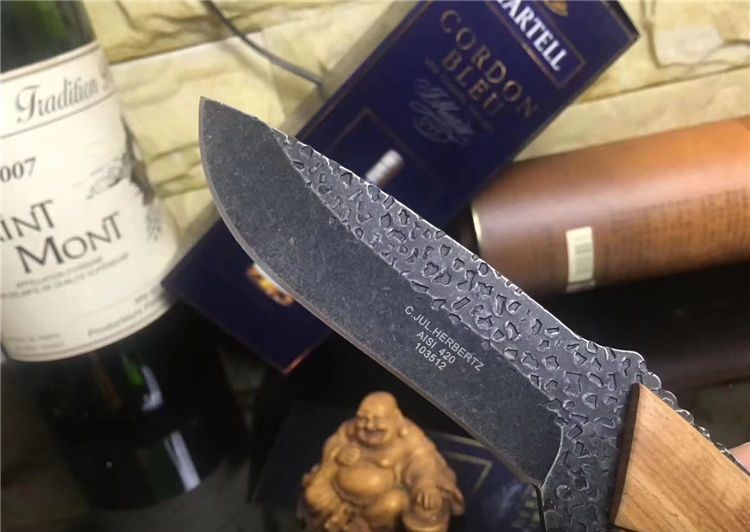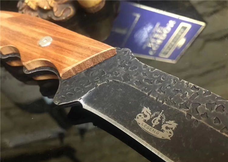 锻打石纹直刀 全长:230mm 刃长:981 刃厚:4mm 硬度:60HRC 手柄:彩木 刃材:锻打钢