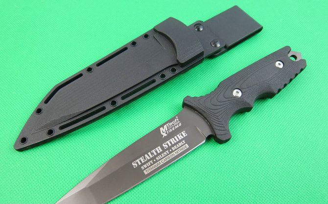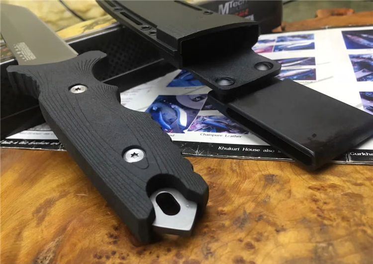 MT8071小直刀 全长:25.7cm 刃长:12.5cm 刃宽:2.8cm 刃厚:0.32cm 刃材:7CR17 硬度:59HRC 表面:镀钛 柄材:ABS加橡塑 柄长:13cm 刀鞘:专用ABS刀鞘 品质:高品质,出口OEM 包装:原装包装