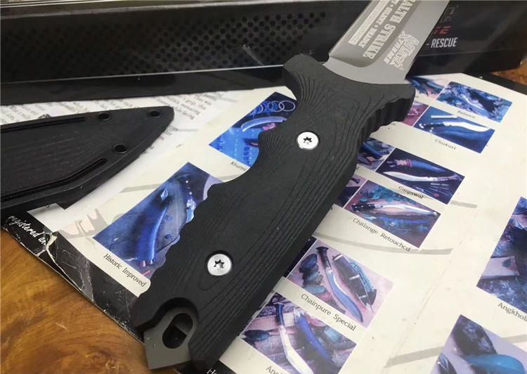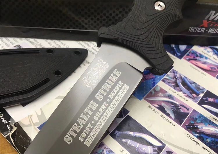 全长:25.7cm 刃长:12.5cm 刃宽:2.8cm 刃厚:0.32cm 刃材:7CR17 硬度:59HRC 表面:镀钛 柄材:ABS加橡塑 柄长:13cm 刀鞘:专用ABS刀鞘 品质:高品质,出口OEM 包装:原装包装