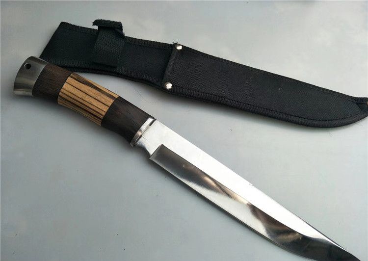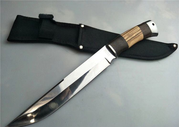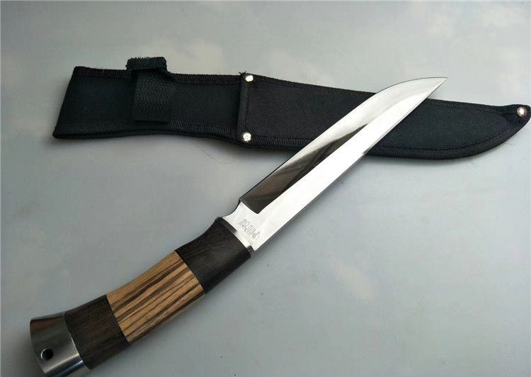 俄罗斯民族直刀 全长:33.5cm 刃长:21cm 柄长:12.5cm 刃宽:3.3cm 刃厚:4.5mm 刃材:5Cr13Wov 硬度:55HRC 表面:镜光 柄材:斑马木 其他:尼农套