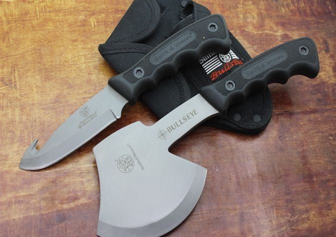 史密斯威森野营二宝 类型:短匕 款式:史密斯威森 全长:23cm 刃长:9cm 刃厚:0.3cm 刃宽:3cm 柄长:13cm 柄材:ABS 材料:440C 硬度:58HRC 净重:150g 表面处理:喷砂 产地:国内代工 类型:斧头 款式:史密斯威森 全长:28cm 刃长:11cm 刃厚:0.5cm 刃宽:9.5cm 柄长:18cm 柄材:ABS 材料:440C 硬度:58HRC 净重:300g 表面处理:喷砂 产地:国内代工