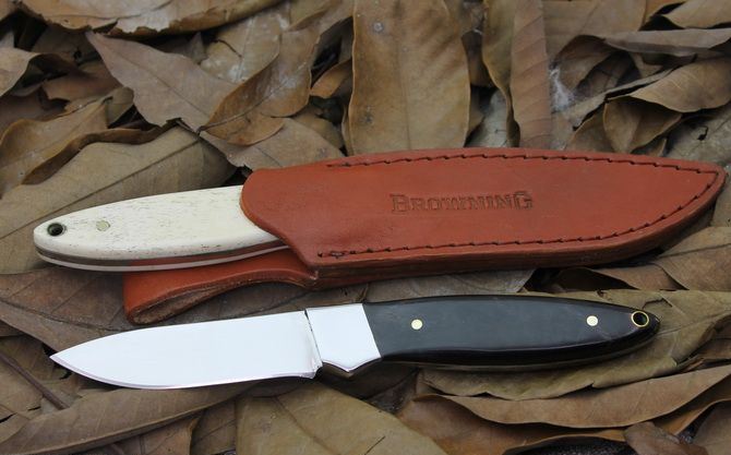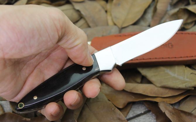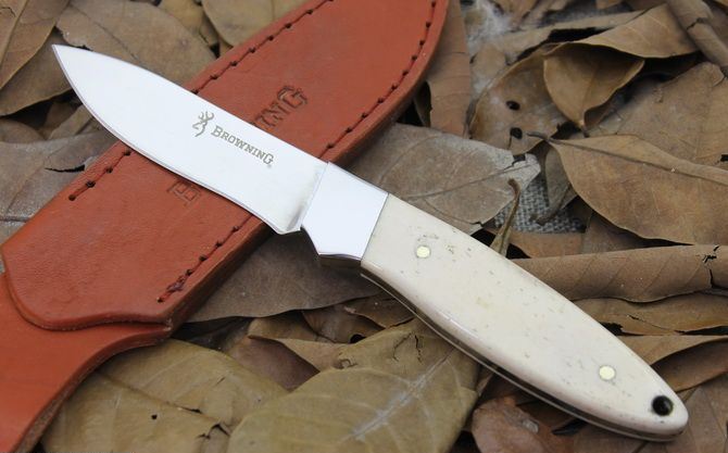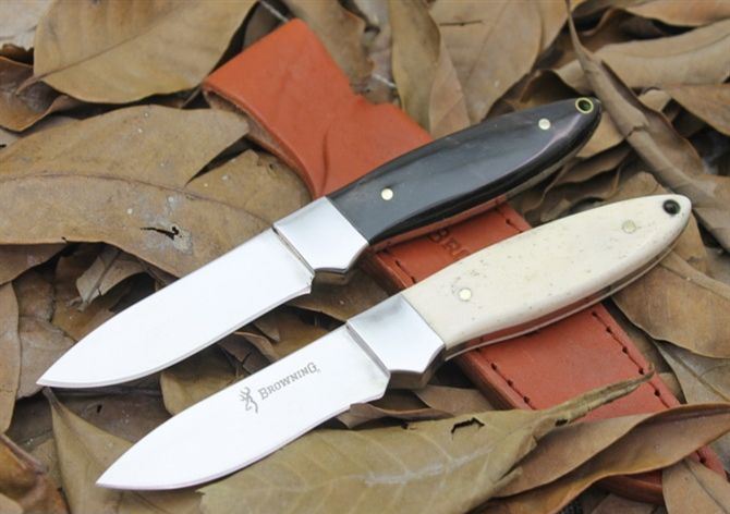勃朗宁双骨直刀 全 长: 18cm 刃 长: 7.5cm 刃 宽: 2cm(最宽处) 柄 长: 10cm 刃 材: 440 硬 度: 56 刃 厚: 0.34cm 重 量: 110g 柄 材: 钢头+白牛骨柄、钢头+黑牛角柄 其 它: 超镜光面