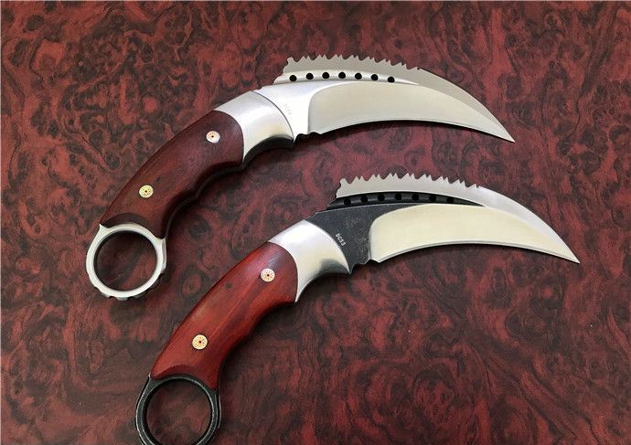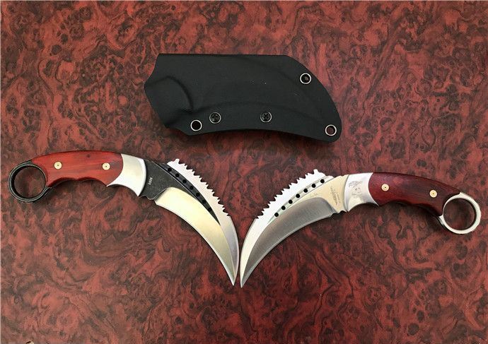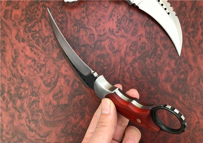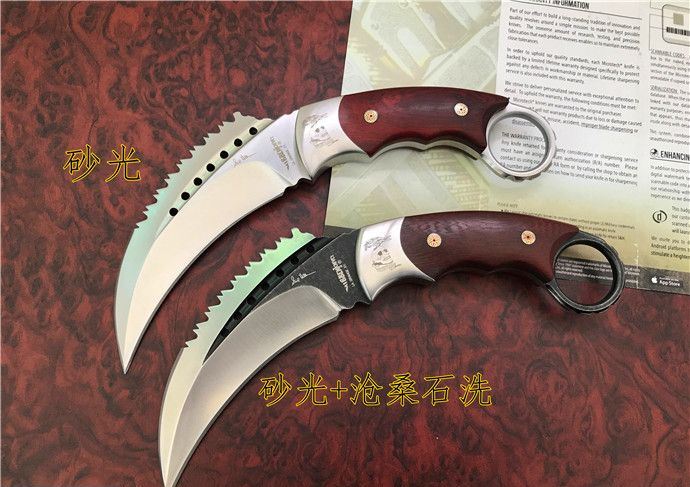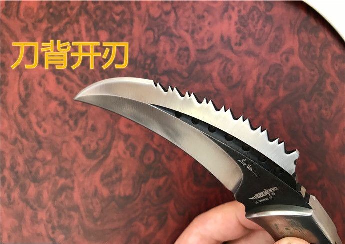吉尔HibbenDC53钢敢死队爪刀 吉尔Hibben自1970年开始就一直是全职的刀具锻造师他们已经成为世界上最受刀迷尊敬的knifemakers之一,本产品采用DC53钢打造,防锈性能好,韧性好的特点。以达到优异的锋利度和切削效果,硬度可达到60-61HRC,表面有两个版本砂光和砂光+沧桑石洗处理;双刃一体,刀刃带 血槽杀气冲天,刀柄采用进口科檀木,颜色鲜艳高端大方,手感更加舒适!配送礼品盒,具有很高的使用和收藏价值