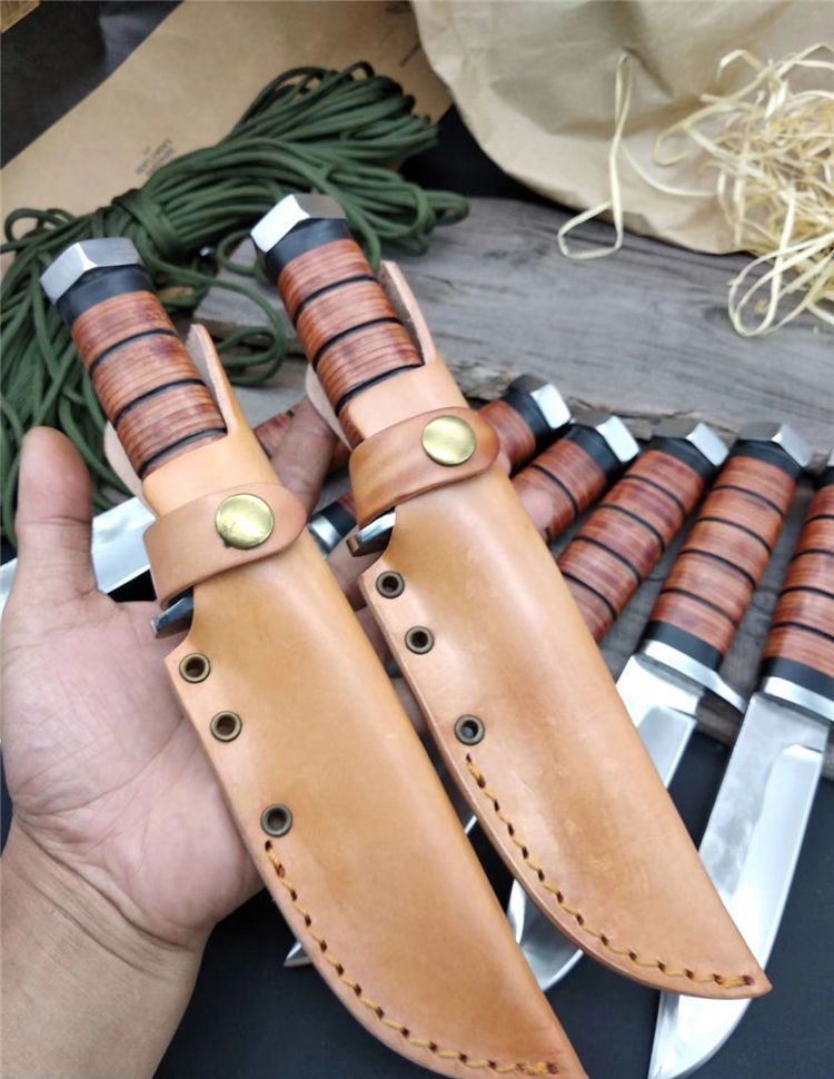 飞行员猎刀 全长:245mm 刃长:132mm 厚:6mm 9Cr18M0v煅打钢,牛皮柄,牛皮刀鞘,手快有,手慢要再等一年