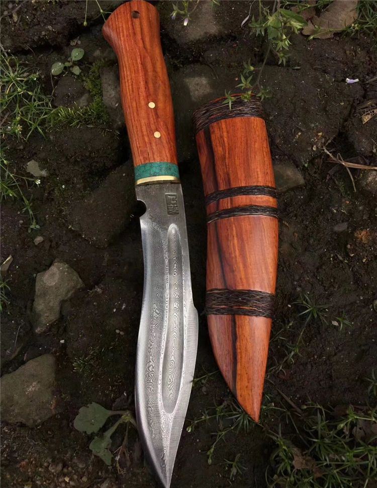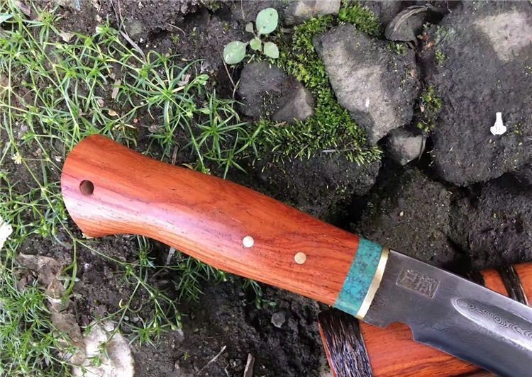 刀壳刀把为酸枝木,此刀锋利钢火好,手感好是一把非常不错的刀