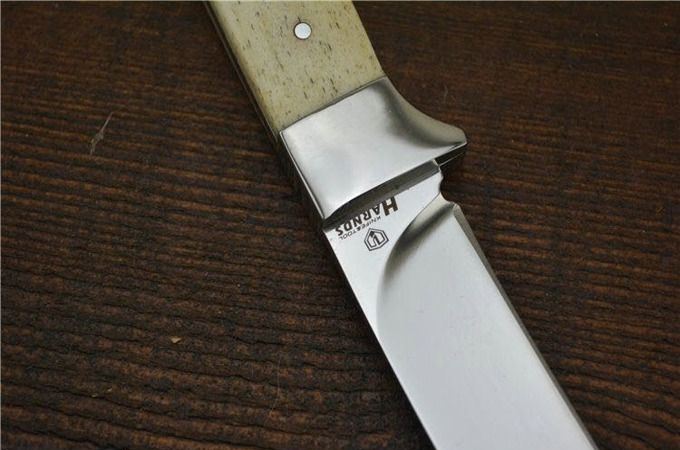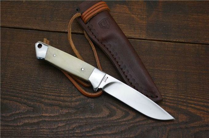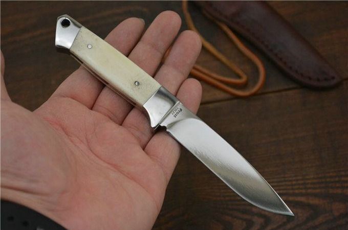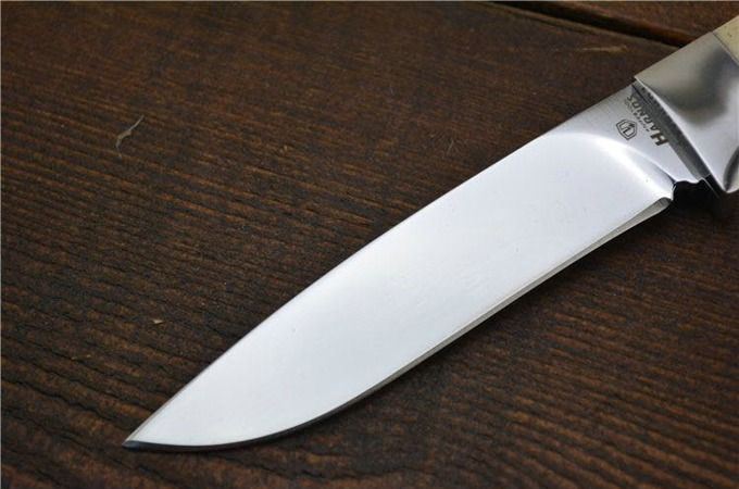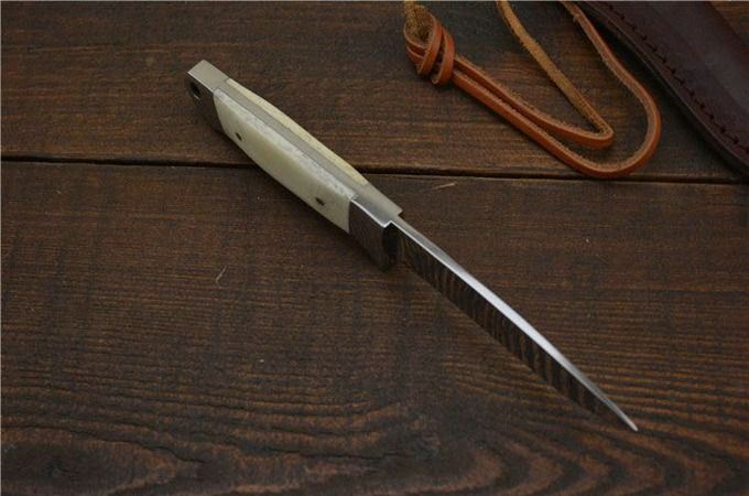 HARNDS悍迪HK3008Frost青霜直刀 刃材:进口瑞典山特维克12C27 刃厚:3mm 刃宽:18.5mm 手柄:白牛骨/烤骨 涂层:镜面 长度:全长175mm 刃长: 84mm 硬度:HRC 60 重量:85克 配件:头层牛皮成型套、鳄鱼皮尾绳 包装:礼盒