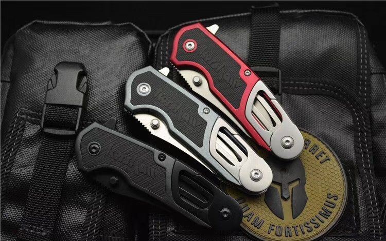 卡秀18600战术折刀(三色) 全长:185mm 刃长:70mm 柄长:110mm 刃宽:30mm 刃厚:3mm 刃材:8Cr13Mov 重量:106.3g 硬度:58hrc 表面:氧化黑+钢本色 柄材:铝合金+尼农 锁型:Hawk lock 其他:配彩盒+说明书 备注:三把刀各自附带的工具都不一样