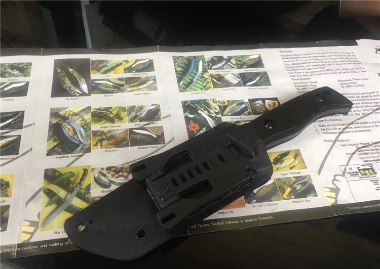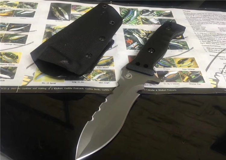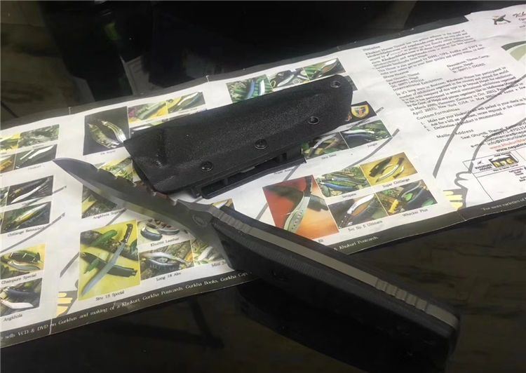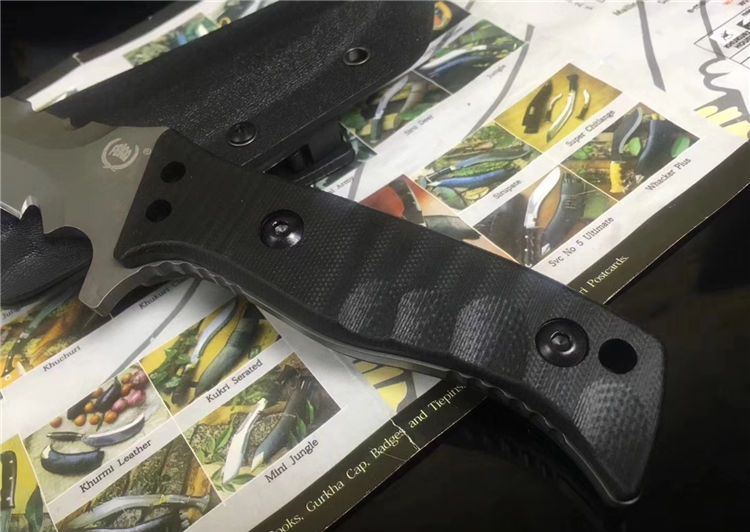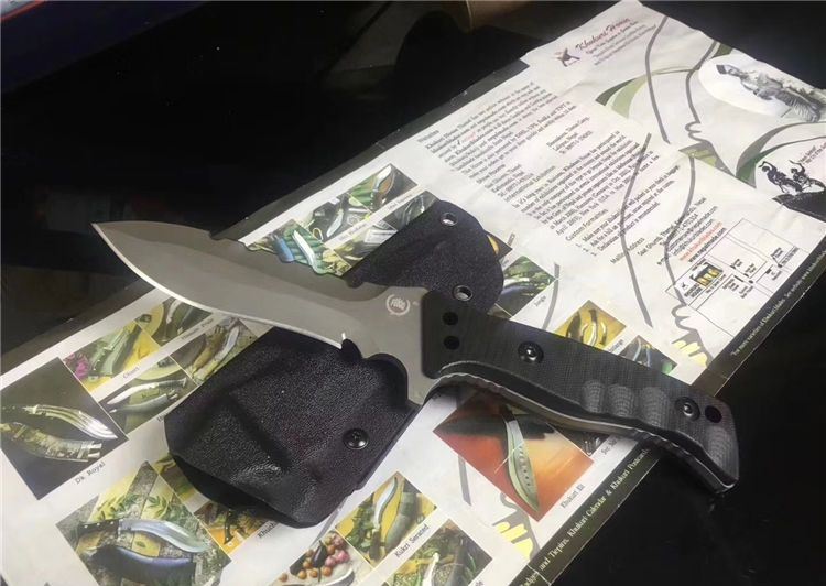 海龙战术直刀 全长:20cm 刃长:9.5cm 材料:D2钢 刃宽:2.5cm 刃厚:0.46cm 柄长:9.5cm 硬度:58HRc 重量:0.25KG 柄材:G10 表面:镀枪钛 包装:硬牛皮手工纸盒 刀套:进口K鞘锋 利度:高锋利级别
