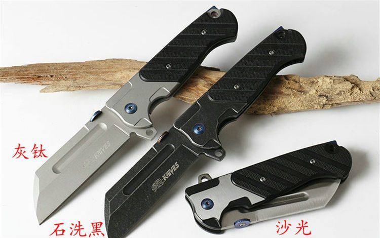 SR小坦克快开折刀(三色) 全长:19.8cm 刃长:8.8cm 柄长:11.0cm 刃宽:2.7cm 刃厚:3.2mm 刃材:440 重量:195g(含包装) 硬度:57HRC 表面:灰钛,石洗黑,精细沙光三色,下单请注明 柄材:正边全钢+G10,侧面全钢 锁型:线锁,内置轴承 其他:配厂盒 +优质尼套