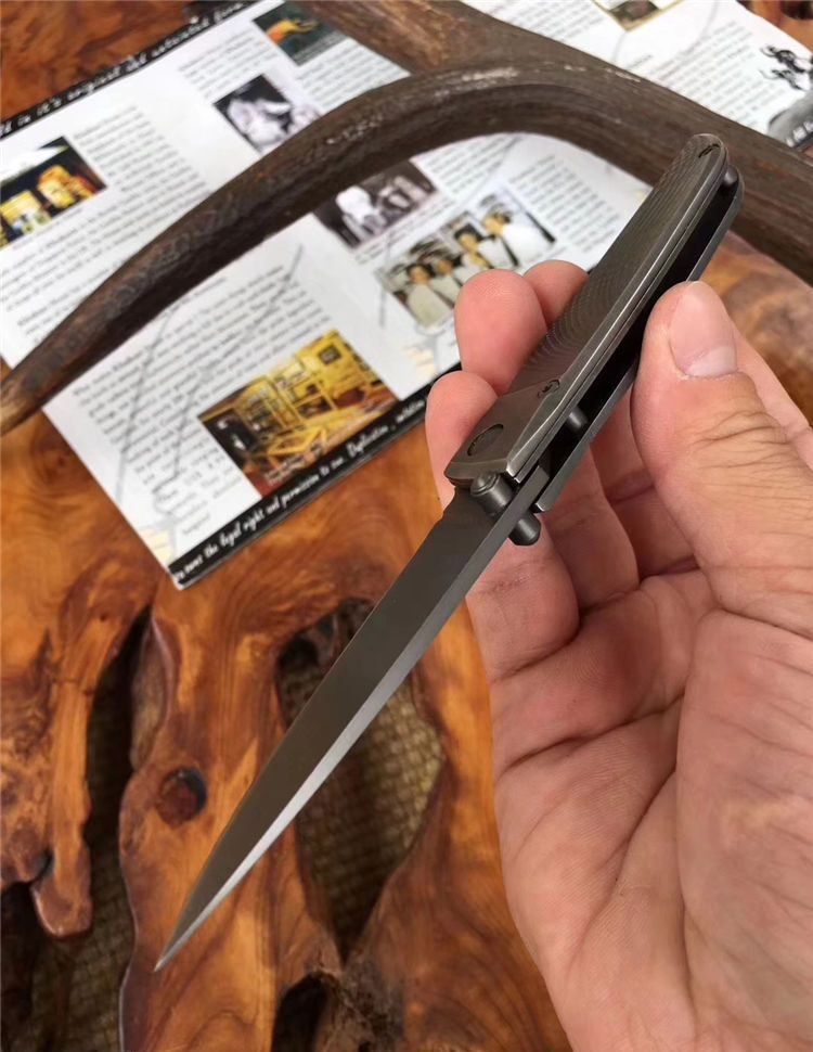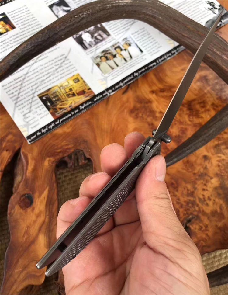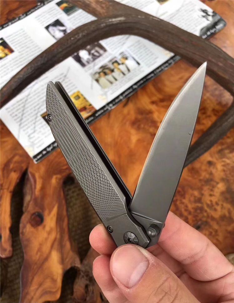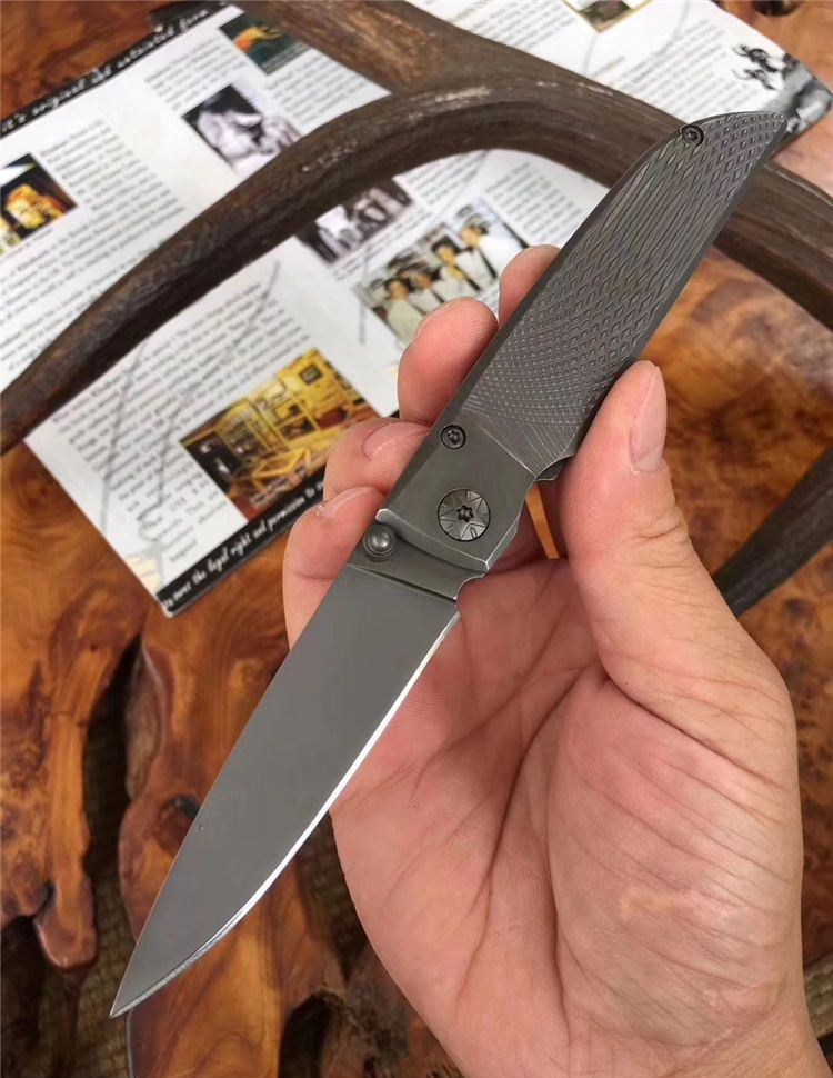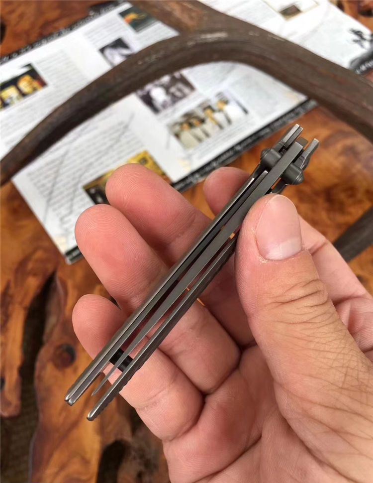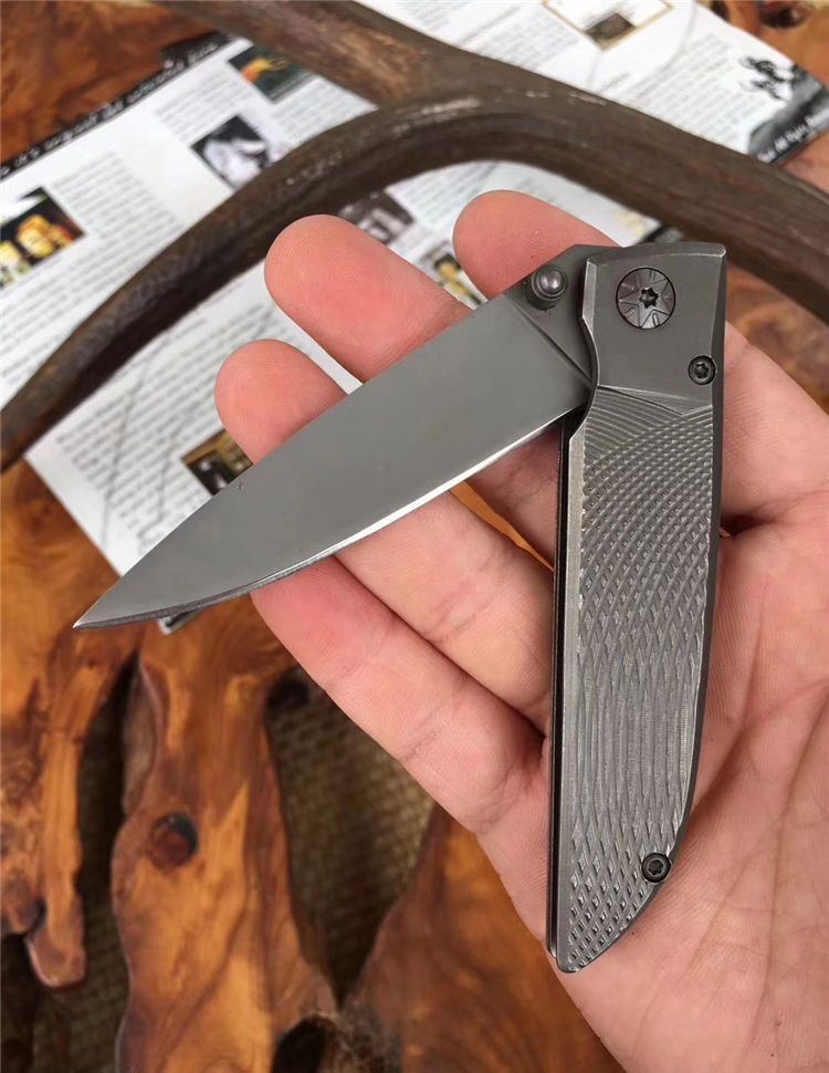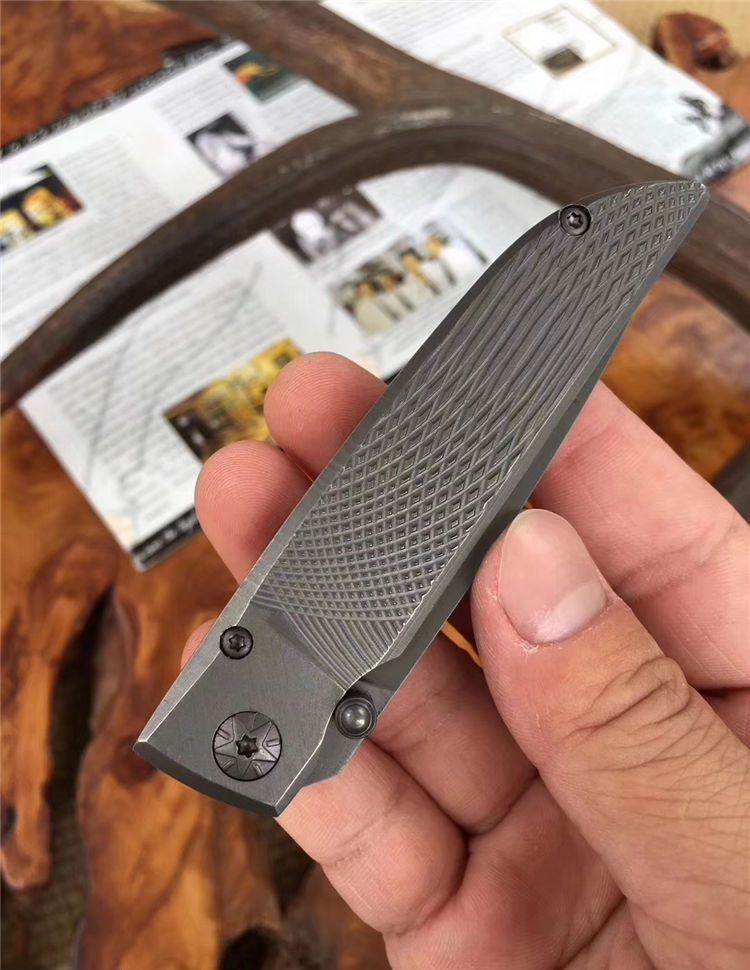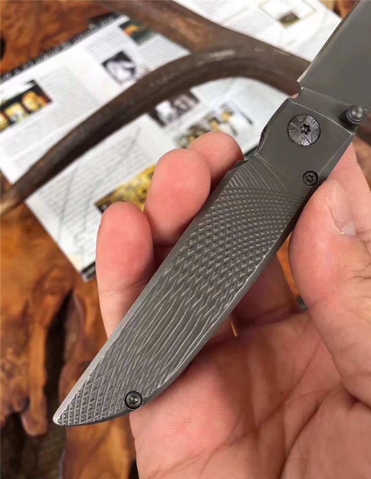 网状折刀 全长:17.5cm 刃长:7.5cm 柄长:9.5cm 刃宽:1.9cm 刃厚:3mm 刃材:9Cr18Mov 重量:85g(净重) 硬度:58HRC 表面:真空钛处理 柄材:CNC电脑锣全钢手柄 锁型:线锁