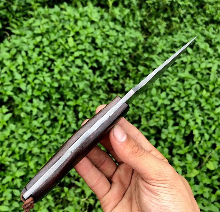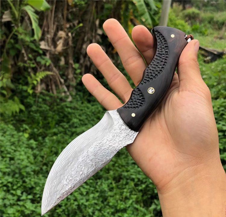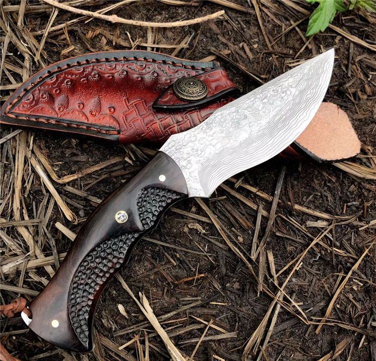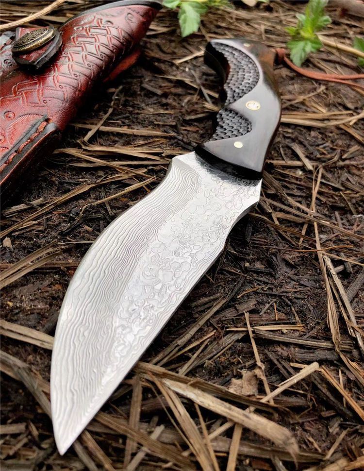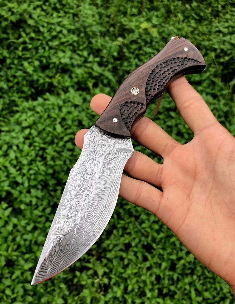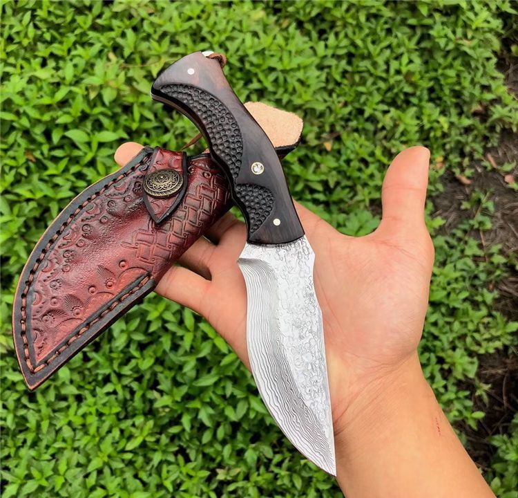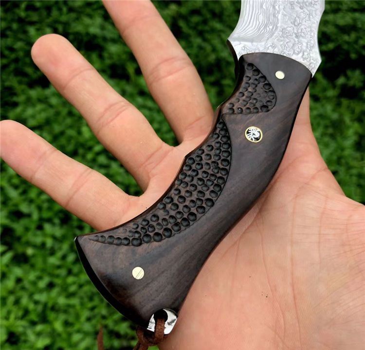 豹师傅大马士革勇者直刀 全长:22cm 刀长:10.5cm 钢厚度:4.2mm 钢材:进口大马士革钢无芯层 硬度:60HRC 手柄材料:黑檀木包装 配置:手工牛皮套+高级礼品盒 皮套:进口植鞣牛皮刀套纯手工制作完成