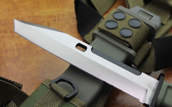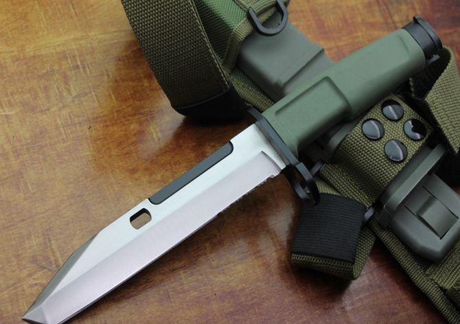 刺刀白刃多功能刺,带套火环,可装备M4/M16,刃面有刺刀口,可剪铁丝网(此功能是根据老毛子ak刺设计来的)非常经典,自带磨刀石,户外功能更加强大