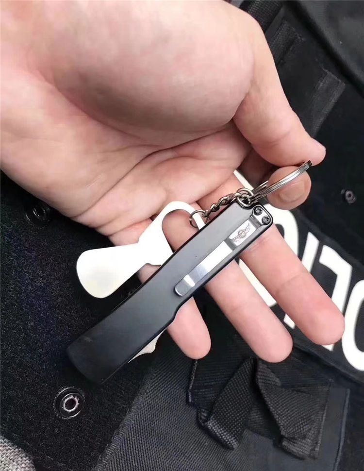 微技术迷你跳刀 全长:15cm 收起:8cm 刃材:440c 柄材:航空铝合金 微技术迷你小跳刀,cnc电脑切割航空铝合金材柄,超小巧便携的直跳刀,尾端钥匙圈穿孔,可玩性强