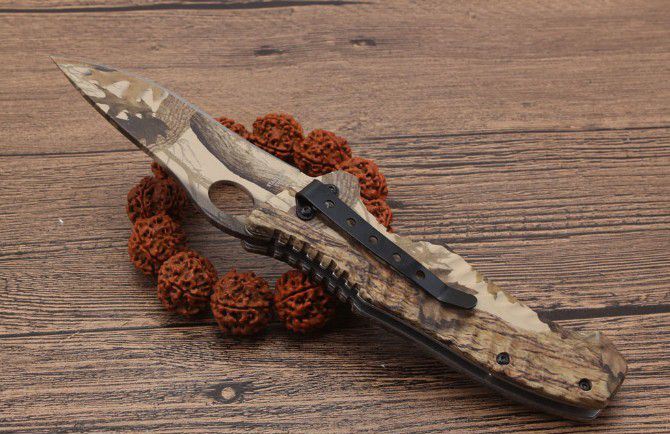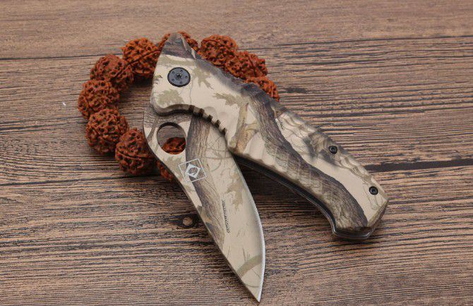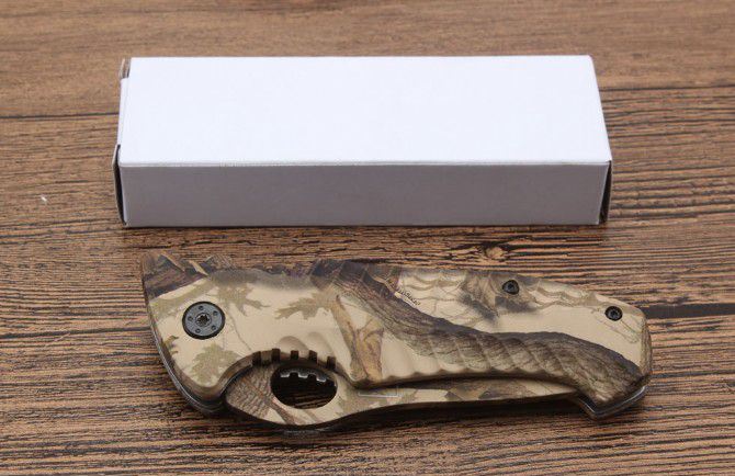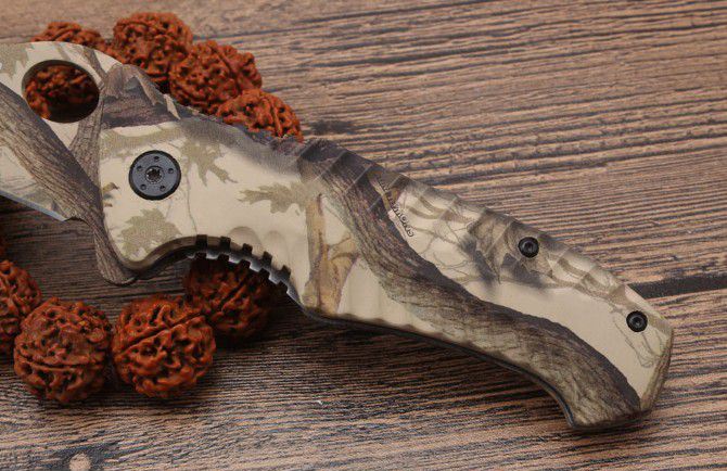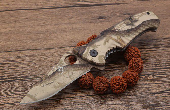 雪盲赤金折刀 全长:214mm 刃长:92mm 柄长:125mm 刃宽:34mm 刃厚:2.5mm 刃材:5Cr15Mov 重量:196g(含包装) 硬度:57HRC 表面:披覆 柄材:钢柄+披履G10 锁型:则锁 其他:配纸盒
