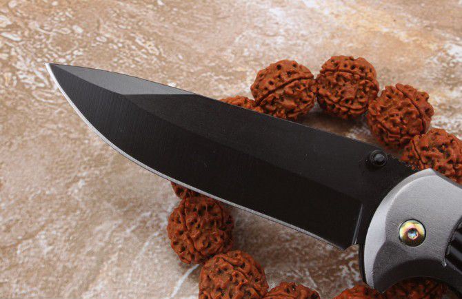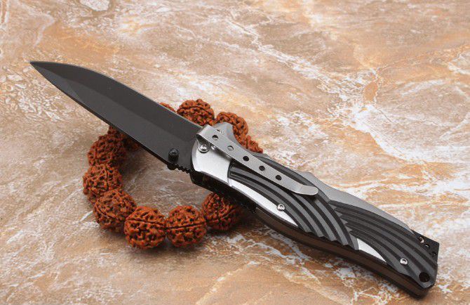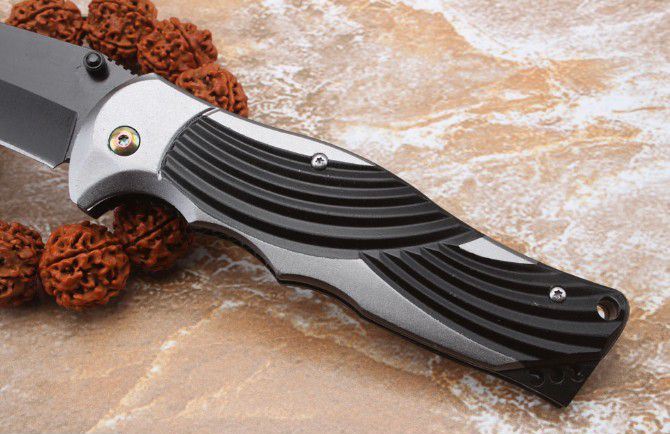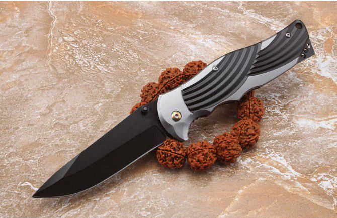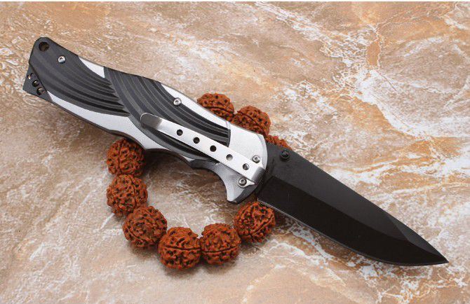 喜雀折刀 全长:22.8cm 刃长:9.5cm 柄长:13.1cm 刃宽:3.1cm 刃厚:2.4mm 刃材:3Cr15 重量:205g(含包装物) 硬度:56HRC 表面:黑钛 柄材:铝片+钢片. 锁型:线锁 其他:配纸盒