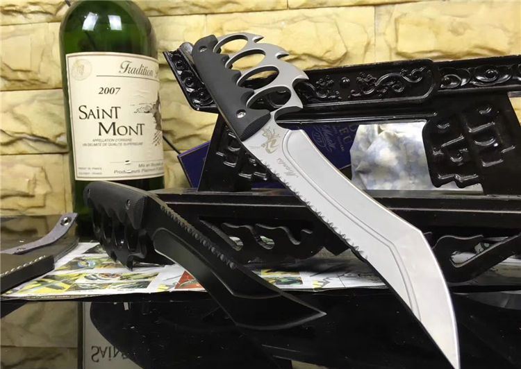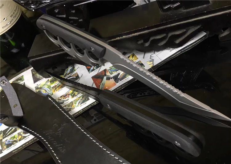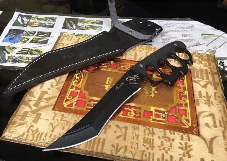 螳螂手环直刀 全长:330mm 刃长:175mm 柄长:135mm 刃厚:6.0mm 刃材:9Cr18mov 柄材:G10 表面:灰钛/黑钛处理 重量:约480g(含刀套) 硬度:58-60HRC 配套:牛皮套 颜色:荒野灰 / 神秘黑