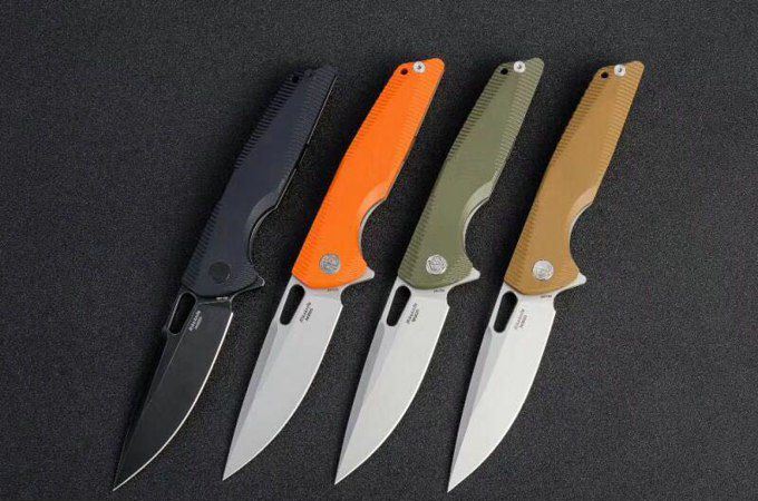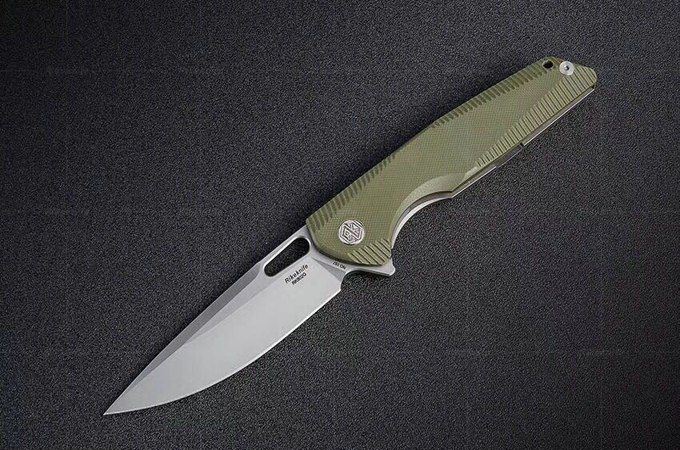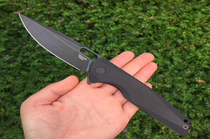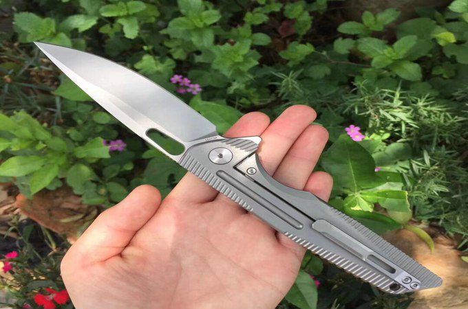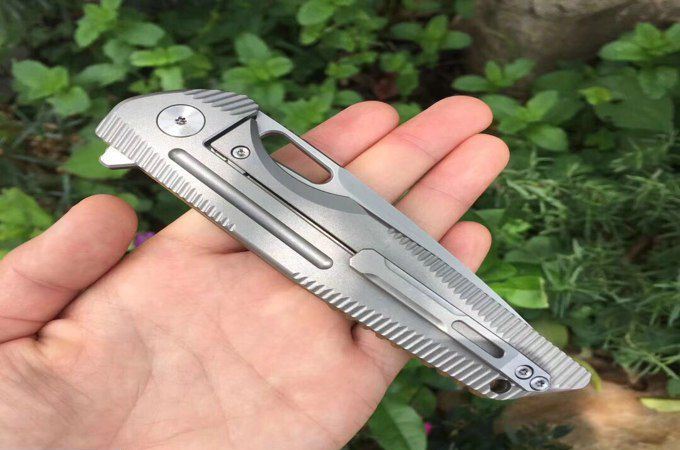 正品802RikeKnife折刀 总长度:22厘米 刀刃长度:9.5厘米 刀刃厚度:4毫米 刀刃材料:154CM 刀刃材料料:6al4v钛+G10 重量:129克 刀:鳍状肢 锁锁类型:线锁