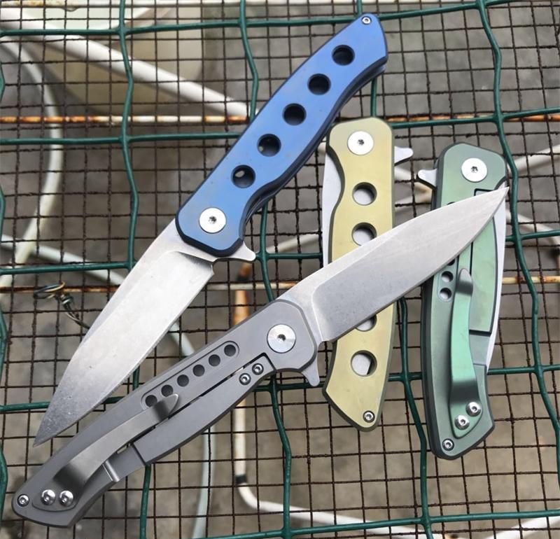 镭射线钛柄D2钢快开折刀三高刀具高品质高硬度高度锋利一把永不生锈的钛合金折刀