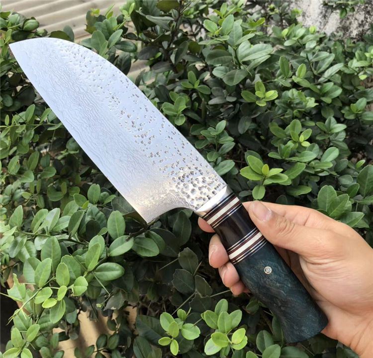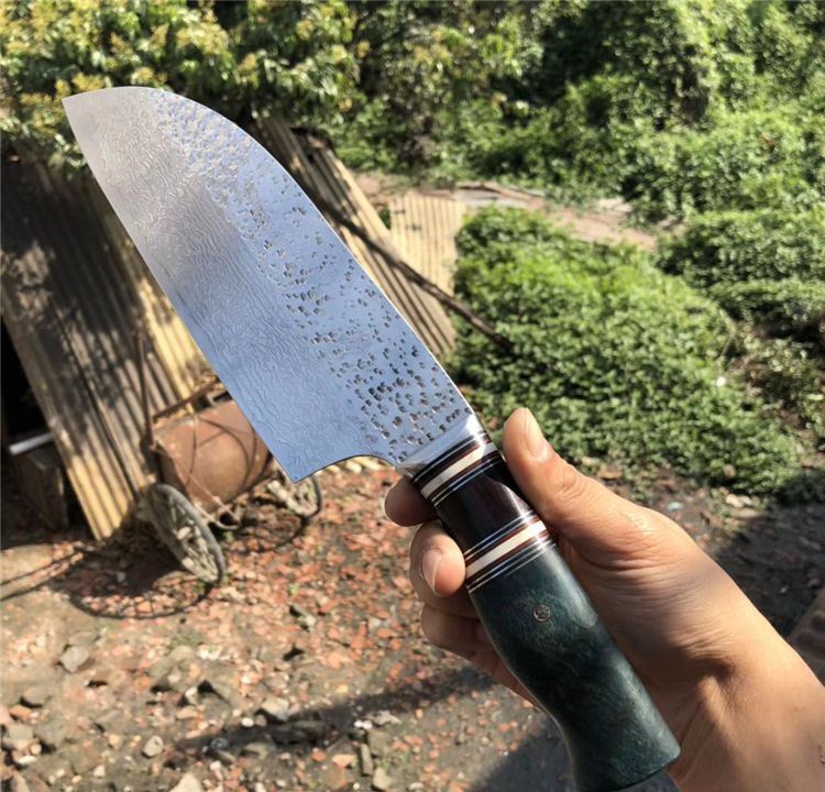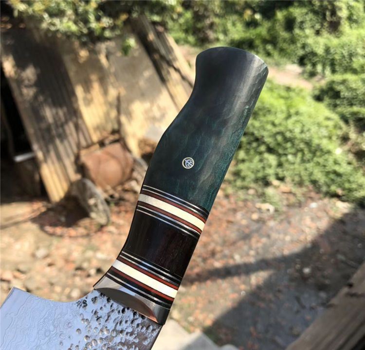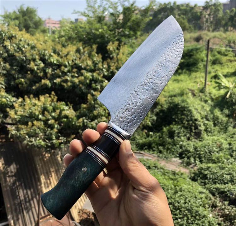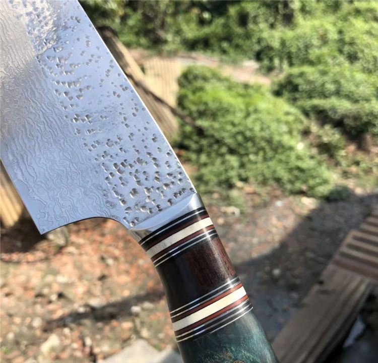 特锋利厨刀VG10芯层大马士革钢,锻打表面经典复古风,(手柄采用孔雀纹稳定化木)质感大方靓丽,送礼佳品