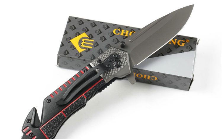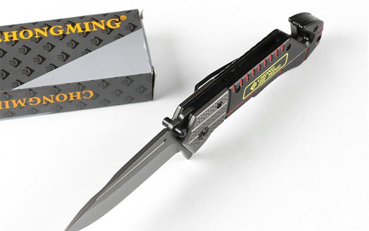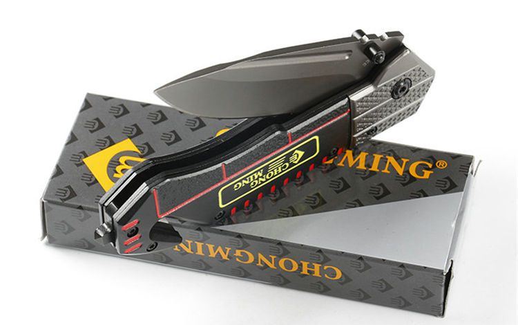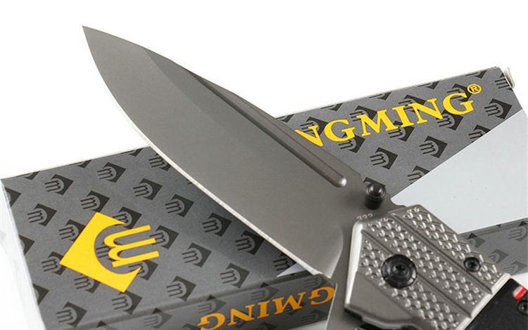 创名快开333折刀 全长:21.0cm 刃长:8.2cm 柄长:12.8cm 刃宽:2.7cm 刃厚:2.8mm 刃材:440 重量:200(含包装) 硬度:57HRC 表面:灰钛, 柄材:钢片+铝片上色彩 锁型:线锁 其他:配厂盒