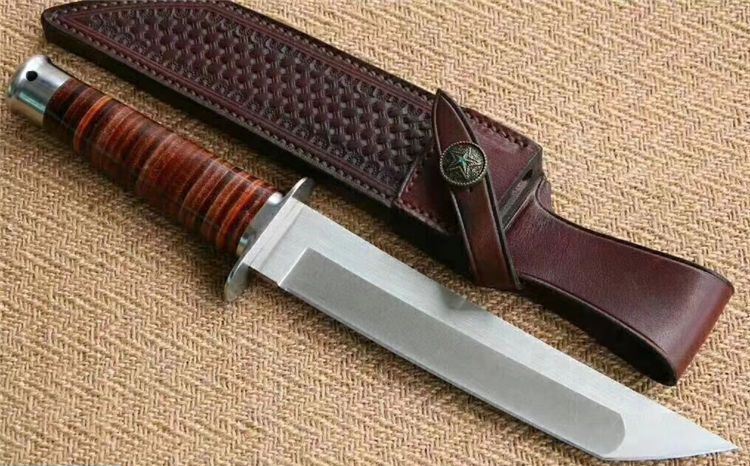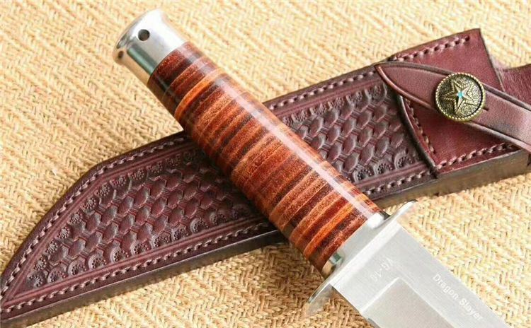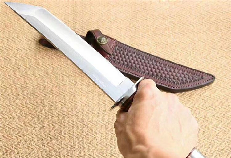 博尔特屠龙直刀 全长:322mm 刃长:195mm 刃宽:34.5mm 刃厚:5.4mm 刃材:VG10钢 热处理:真空淬油深冷热处理 硬度:59-60HRC 净重:380g(不含包装) 柄材:皮柄+尾椎 刀鞘:高端头层皮手工牛皮鞘 刃面:幼砂光幼拉丝处理 磨式:凹磨+刀尖V磨 包装:纸盒+刀油
