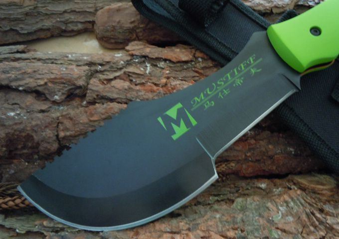 MUSTIFF马仕帝夫追踪者 全长:28 前刃:8.5 厚刃:6 厚度:4MM 材料:3铬13不锈钢 柄材料:ABS披覆橡塑,手感好 鞘:加厚尼龙 重量:210克 TOPS经典款式,前切削后砍的设计,一体刃柄结构,紧塑型ABS手柄,简单实用