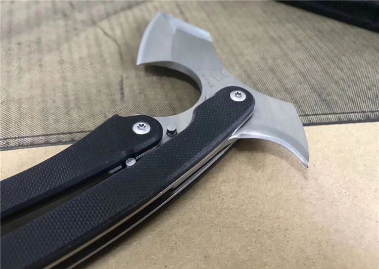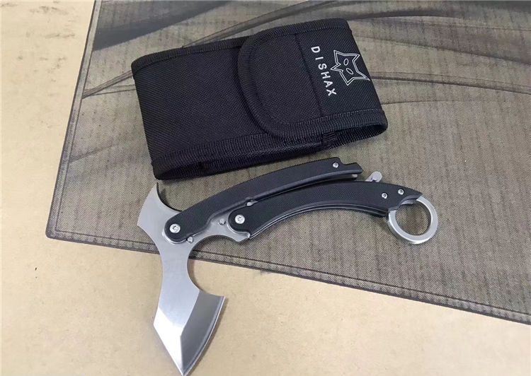 狐狸FOX迪沙斯迷你斧头 全长:16.8cm 刃长:9.9cm 柄长:11.7cm 刃宽:3.5cm(最宽处) 刃厚:3.8mm 刃材:5CR15MOV 硬度:57HRC 刀柄:全钢柄加G10 重量:250克(含包装) 配原厂包装+尼龙套