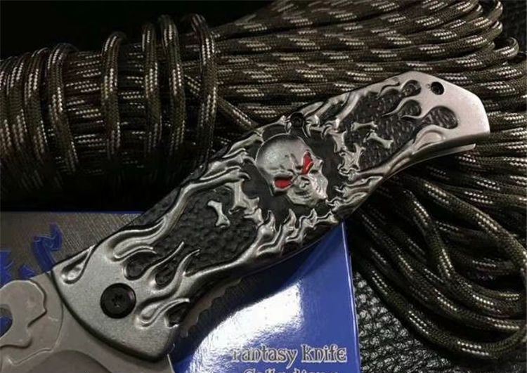 刀柄火焰雕刻栩栩如生,整体设计非常霸气。