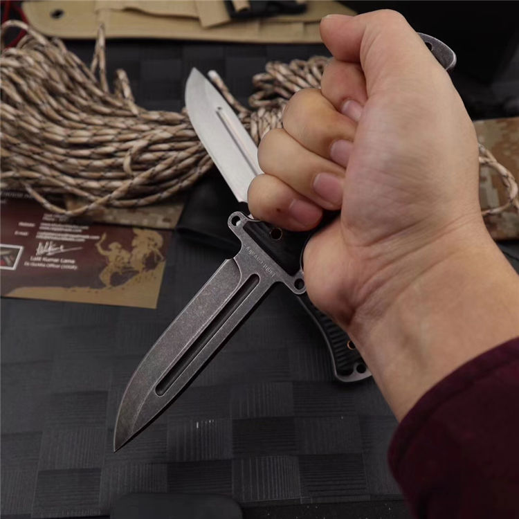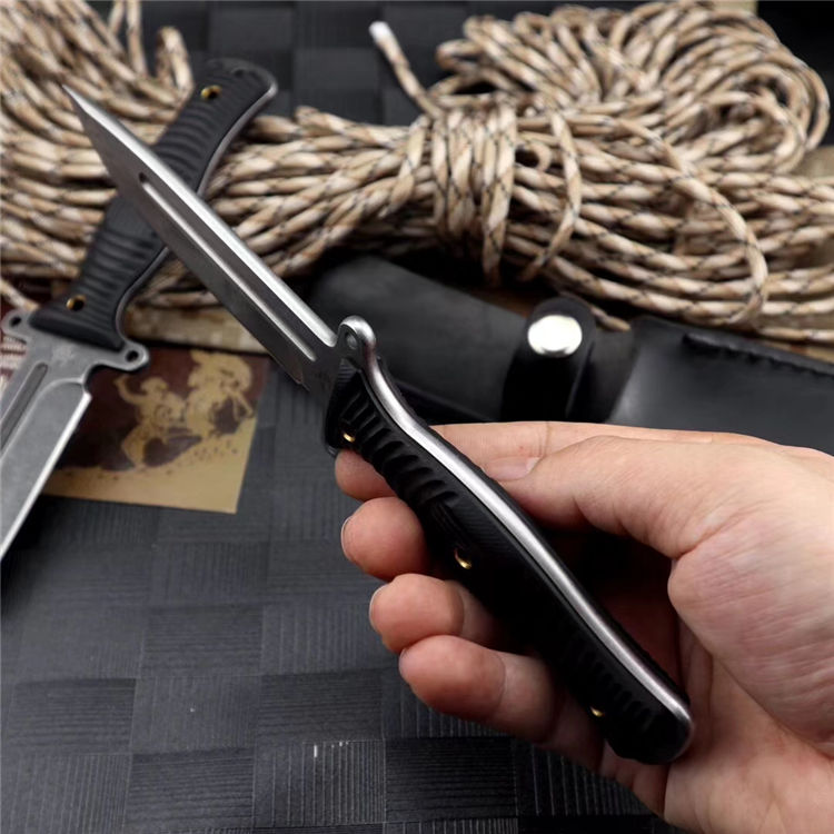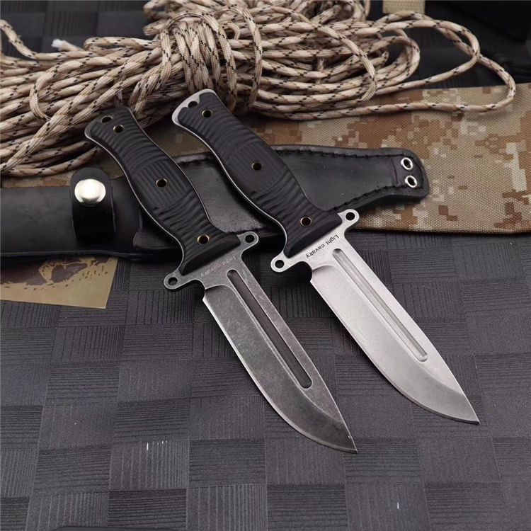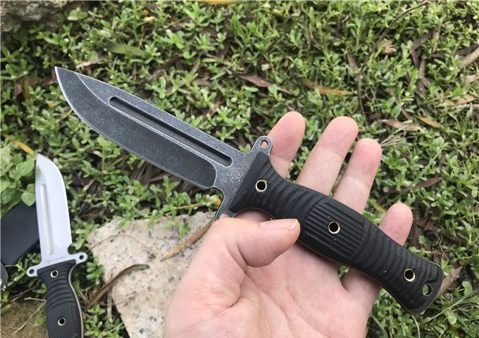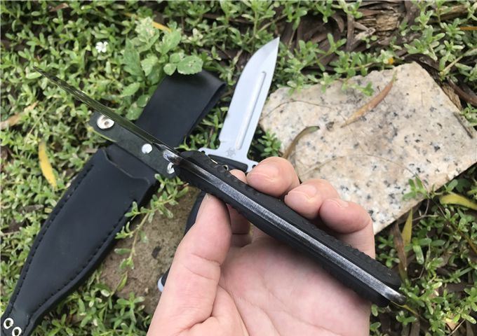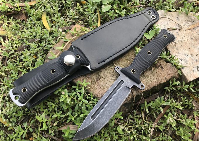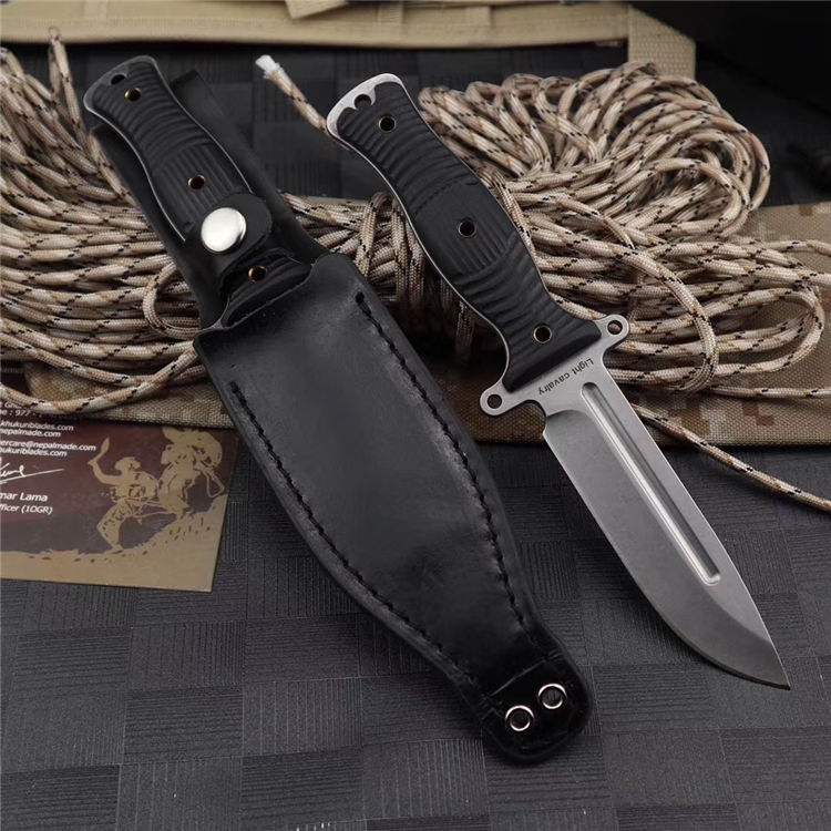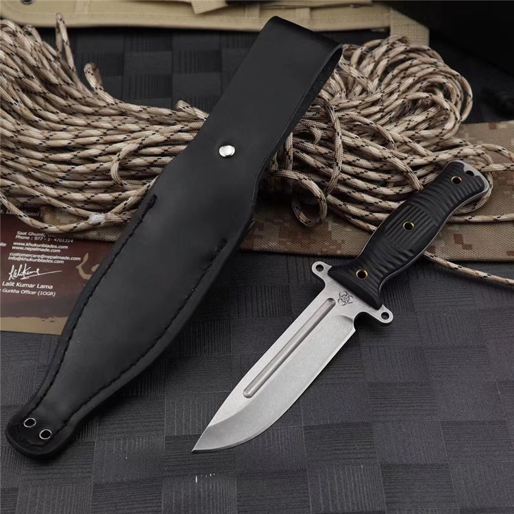 行尸走肉轻骑兵直刀 全长:22.8MM 刃长:10MM 刀柄:10.8MM 刃厚:0.4MM 刃面打磨:数控V磨 刃面处理:石洗和沧桑石洗 热处理:真空油淬热处理 硬度:59HRC 材料:9CR18钢材 柄材:黑色G10 刀鞘:皮套 刀重:约168G 总重:约220G