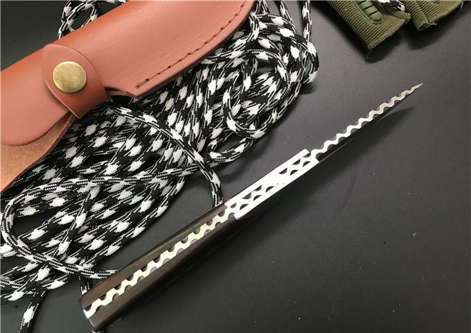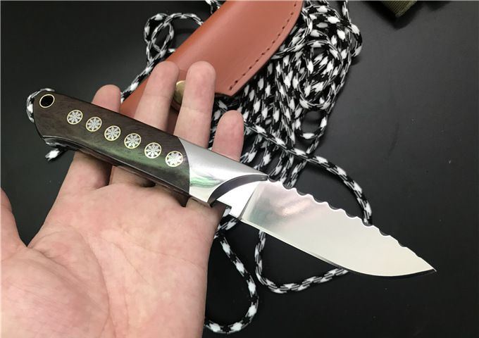 镜面逆神直刀 全长:21CM 刃长:8CM 厚度:0.45CM 刃材:9cr18mov 硬度:59HRC 重量:约200g 刀面:超镜光面 柄材:黑檀木 刀鞘:皮套