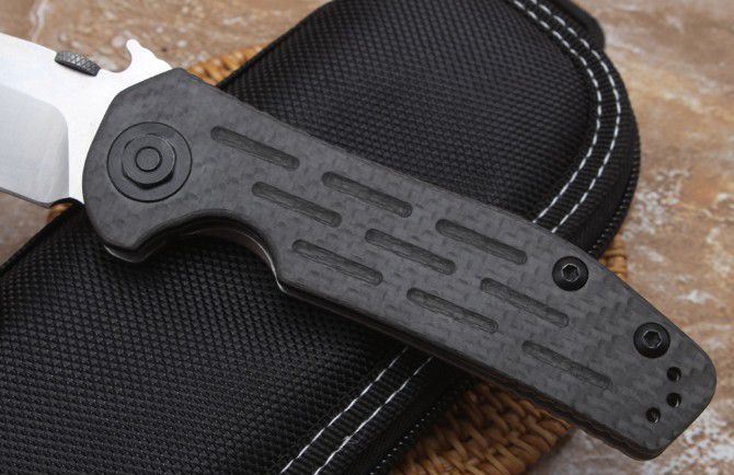 碳纤维钛合金ZT0630折刀 总长:21.6cm 刃长:9.2cm 刃厚:4.1mm 刃材:D2 刃面处理:石洗 手柄材质;正面碳纤+钛合金 系统:滚珠系统 硬度:58-60HRC 重量:240克(含包装物) 包装:尼龙套拉链包