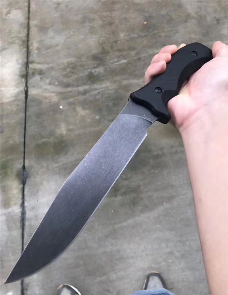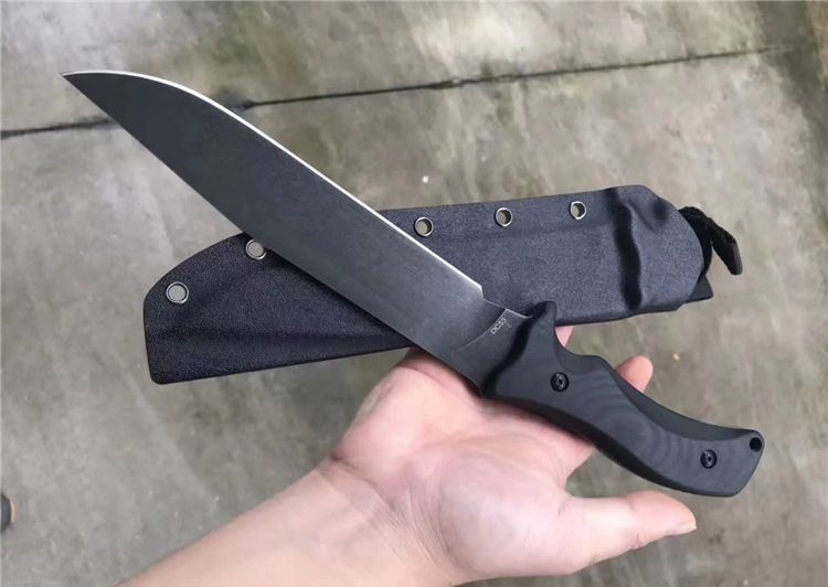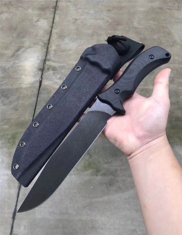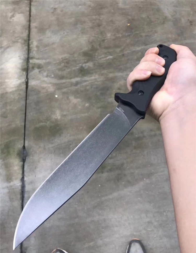 疯狗DC53钢石洗版战术直刀 全长:330mm(龙骨一体) 刃长:205mm 刃厚:5mm 柄长:125mm 刀刃最宽处:38mm 表面:沧桑石洗 类型:以锋利度,韧性保持度最出色 开刃方式:二次开刃 刃材:DC53(线切割开料) 热处理方式:真空淬油热处理 硬度:60_61HRC 柄材:G10手柄+钢钉 包装:精美黑礼盒+护刀油+伞绳 毛重:690克(含包装) 净重:385 刀鞘:进口k鞘+带扣