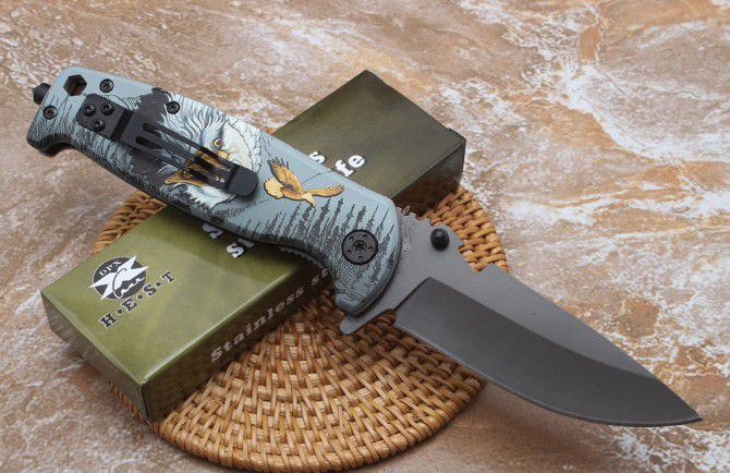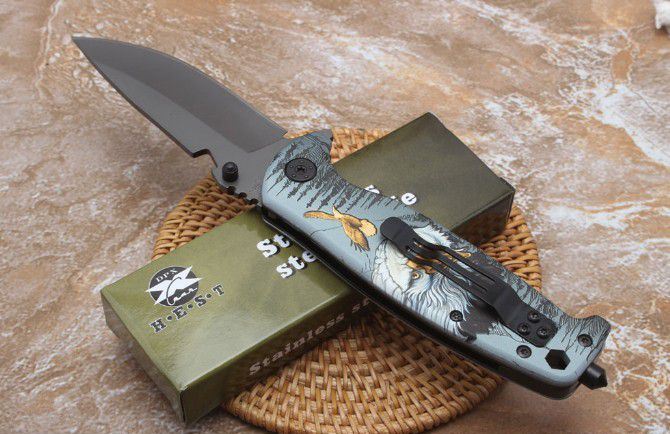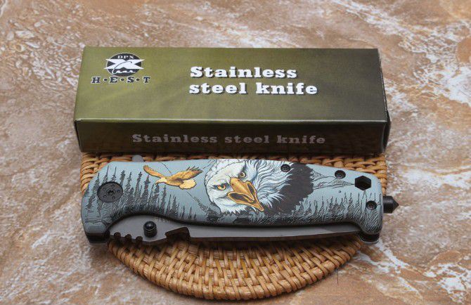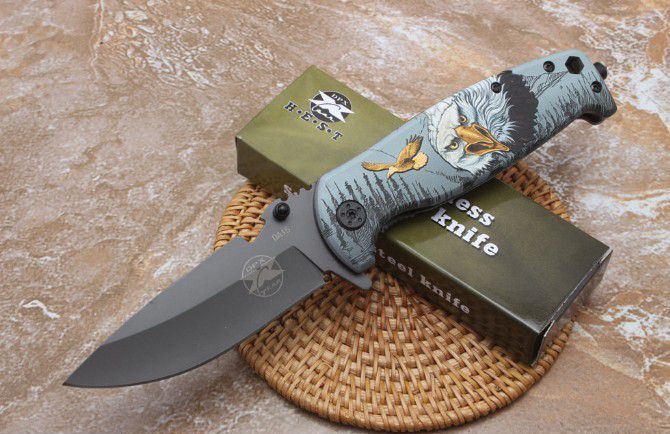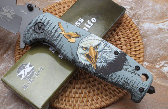 DA15C折刀(3D彩图) 类型:折刀 全长:21.5cm 刃长:9cm 柄长:12cm 刃厚:2.8mm 刃宽:3cm 刃材:5Cr13 柄材:合金铝 硬度:55HRC 净重:120克 毛重:130克 表面处理:披履 锁型:快开