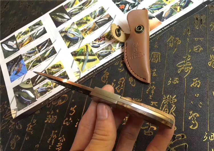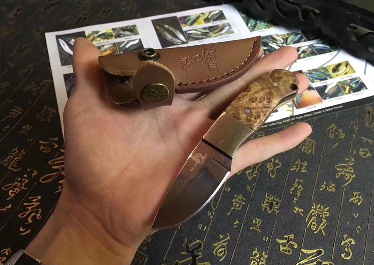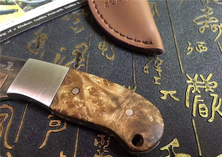 野鹿迷你直刀 全长:130mm 刃长:70mm 柄长:60mm 刃宽:31mm 刃厚:5mm 刃材:8CR18Mov 重量:420克(含包装) 硬度:59HRC 表面:镜面 柄材:影木 锁型:定锁 其他:配头层皮真皮套