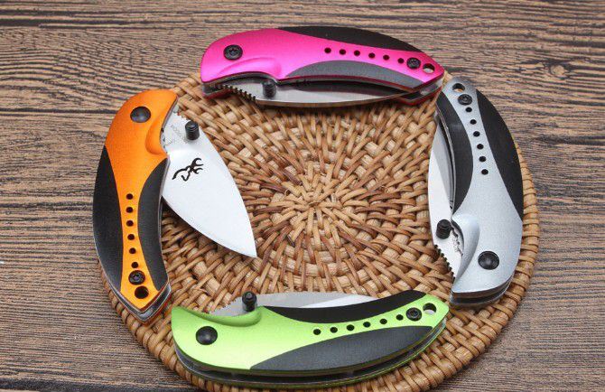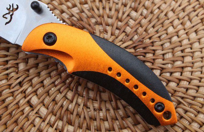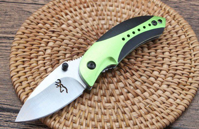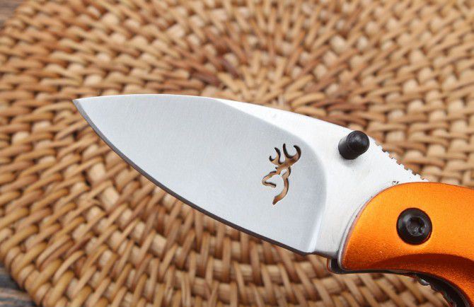 勃朗宁小企鹅折刀 全长:12.1mm 刃长:47mm 柄长:7.2mm 刃宽:22mm 刃厚:2.3mm 刃材:7Cr15Mov 重量:52g(含包装) 硬度:57HRC 表面:砂光 柄材:钢柄+铝 锁型:侧锁 其他:配纸盒LOGO掏空的 4款可选