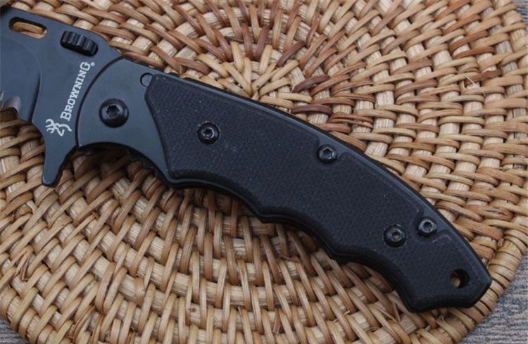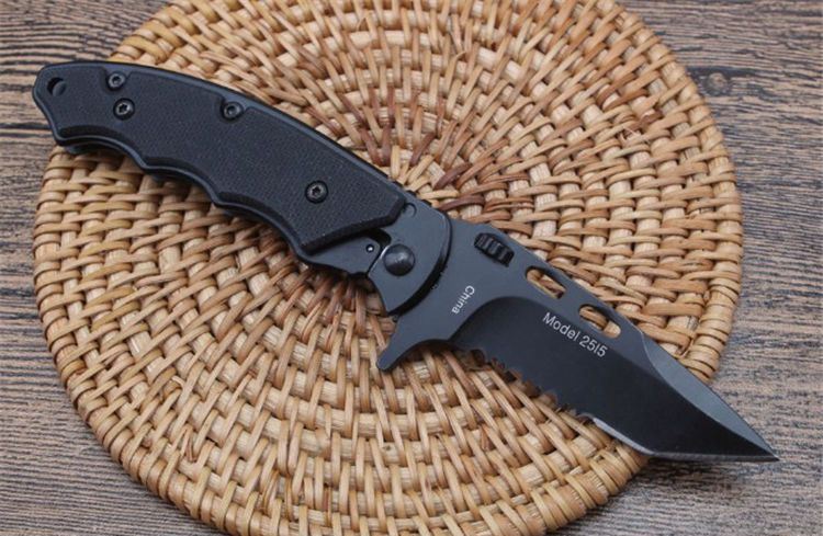 勃朗宁Model2515折刀 全 长:14.5mm 刃 长:6.1mm 柄 长:8.1mm 刃 宽:2.0mm 刃 厚:0.23mm 刃 材:7Cr15Mov 重 量:72g(含包装) 硬 度:57HRC 表 面:黑钛 柄 材:钢柄+G10 锁 型:侧锁 其 他:配纸盒
