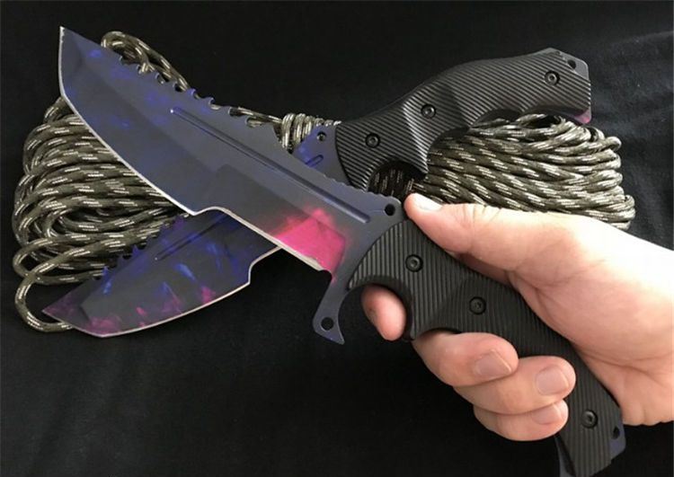 冰山版冰火勇士直刀 全长:28CM 刃长:14.5CM 柄长:12.5CM 身最大宽度:4.6CM 刀厚:0.4CM 刃面:烈火纹 毛重:520克(含刀鞘) 钢材:5CR15钢 硬度:57 刀柄:绝缘强化塑胶