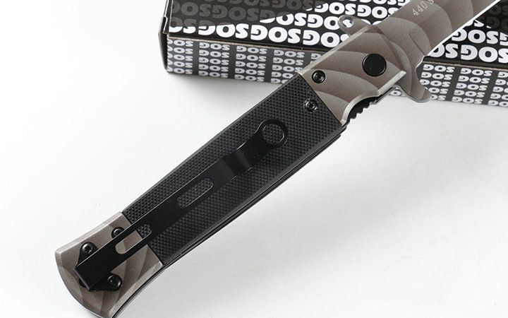美国SOG.KS931A羽毛纹折刀 全长:220mm 刃长:95mm 柄长:120mm 刃宽:18mm 刃厚:2.8mm 刃材:5Cr13 重量:150g 硬度:56HRC 表面:三D打印图案 柄材:钢片+G10片 锁型:线锁快开 总重:20KG
