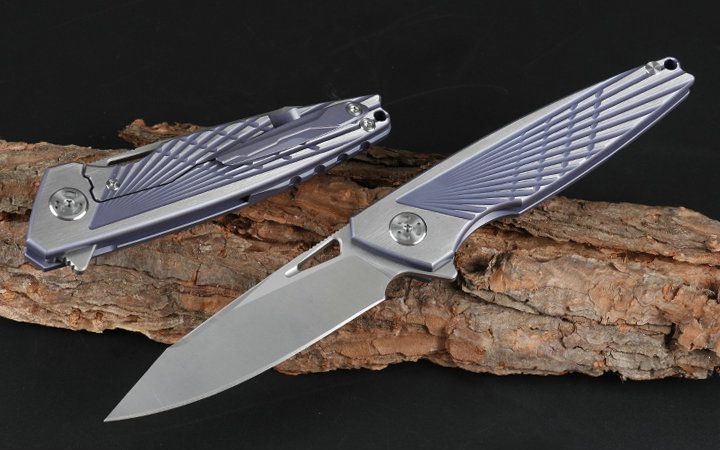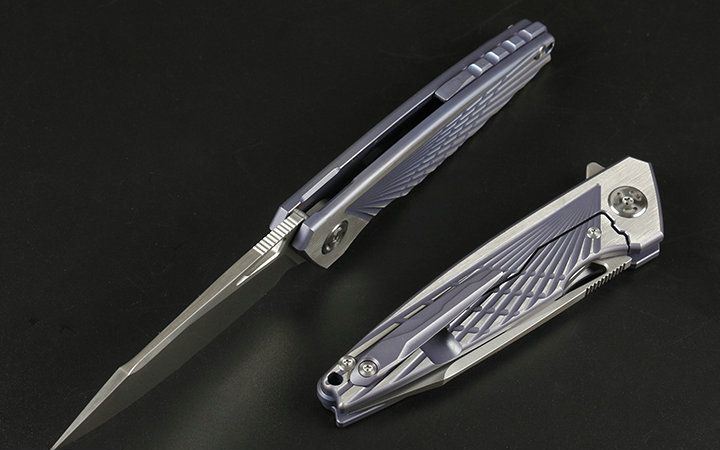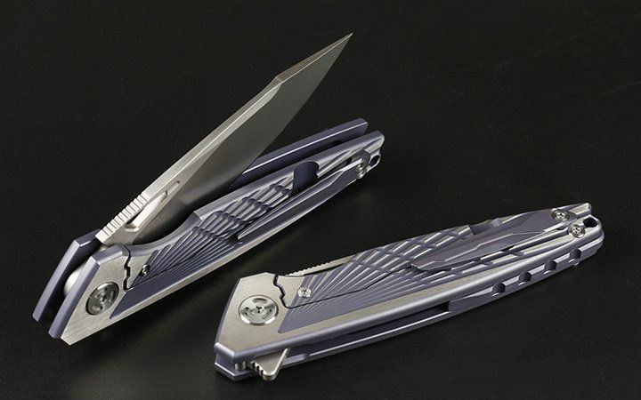 M390放射线折刀 全长:21.2cm 刃长:9.5cm 柄长:11.7cm 刃宽:2.0cm(最宽处) 刃厚:3.5mm 刃材:优质M390 硬度:60-62HRC 刀柄:钛合金(表面经真空处理) 表面:丝光 锁定:侧锁 重量:190克(含包装) 备注:配优质尼龙套和钛合金背夹 其他:现货是加装陶瓷轴承,开合更顺畅,由于生产难道大,数量少,是款最热销产品