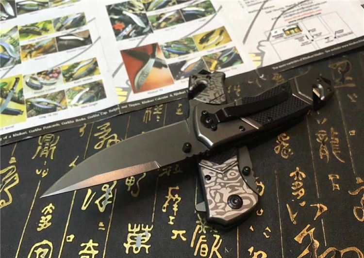 勃郎宁F119折刀 全长:215mm 刃长:95mm 柄长:120mm 刃宽:26mm 刃厚:2.9mm 刃材:5CR15 重量:200g (含包装物) 硬度:58HRC 表面:花纹 柄材:手柄全钢
