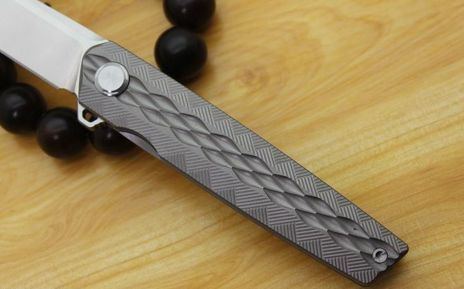 TS06霹雳战火折刀 总长:205毫米 刃长:90毫米 柄长:115毫米 刃厚:4毫米 宽度:23毫米 材质:D2(房间100%,D2,可以测试) 处理材料:砂光拉丝 柄材:钛合金 刀片处理:缎面 手柄处理:CNC 硬度:59-60HRC 系统:滚珠轴承系统 净重:120克(误差2克) 其他:纸箱礼品包装