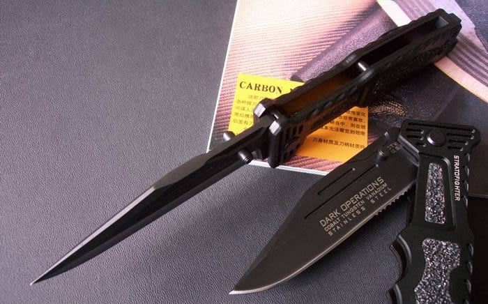 全 长: 26cm 刃 长: 11.5cm 刃 厚: 6mm 刃 材: 8CR13MOV 硬 度: 58HRC 表 面: 黑钛 柄 材: 铸铝 锁 闭: 线锁 包 装: 高档礼盒 重 量: 380克 产 地: 中外合资