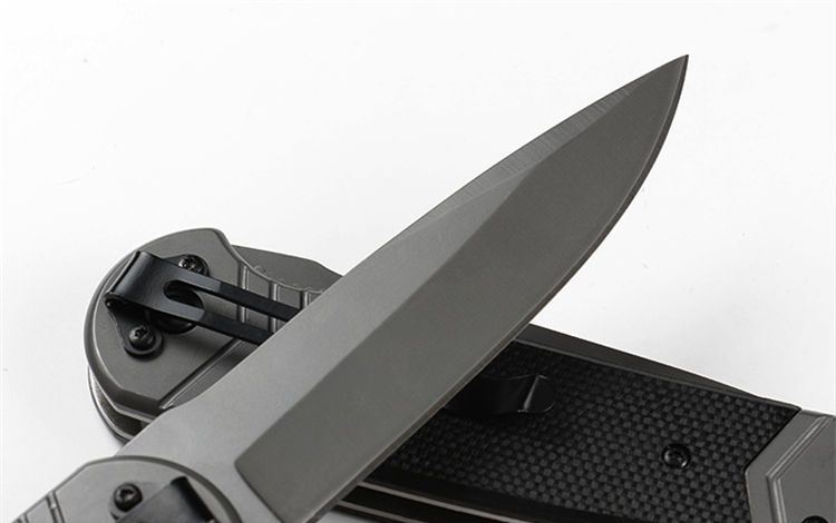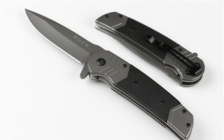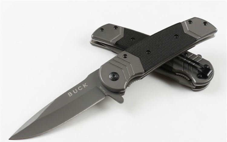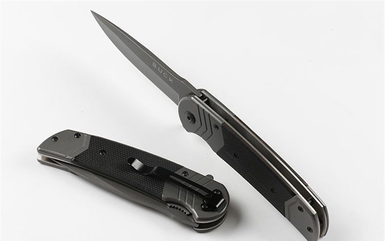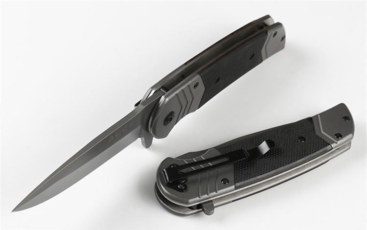 巴克DA139战术折刀 全长:22.2cm 刃长:9.8cm 柄长:11.4cm 刃宽:2.6cm 刃厚:3.6mm 刃材:440C 重量:255g(含包装物) 硬度:57HRC 表面:真空处理度钛 柄材:钢片+G10 锁型:线锁