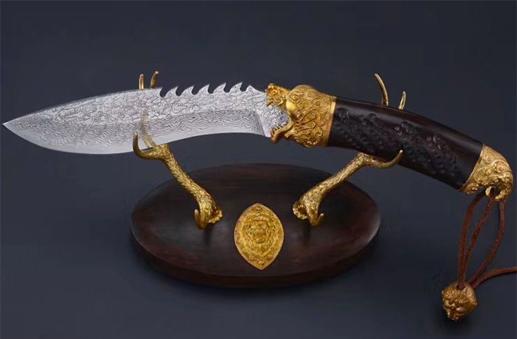 专门为刀友设计一款户外刀架让你的保刀有个安身之所根据鹿角精心设计手工制做办公桌博古架茶台均可摆放小到小折刀,大到40cm博弈刀都可以摆放精雕细琢黄铜精铸高密度红木底座刀架高11cm宽14cm亲爱的刀友刀客,喜欢的抓紧吧